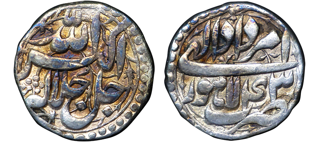 Akbar (AH 963-1014, 1556-1605 AD), Silver ½ Rupee, 5.72 gms, Surat (سورت) Mint, AH 984, Obv. Kalima Shahada withing dotted square & mint name Surat in left quadrant, Rev. Jalal-ud-din Muhammad Akbar Badhsh Ghazi with date AH984 withing dotted square, Mint State specimen with pleasing luster, Almost complete mint name on flan, Unreported, Unique, exceedingly rare. As a chaotic succession crisis unfolded for the Gujarat Sultanate, Akbar recognized that the matter of conquering Gujarat was of paramount importance. He subsequently launched his campaign from Fatehpur Sikri on the day 20 Tir, divine month, corresponding to Tuesday, 20 Safar 4th July 1572. Upon conquering Ahmedabad, Akbar received information that the Mirza rebels were in Surat. He then marched to annex the fort, arriving in its vicinity on 8 Bahman, Divine month corresponding to Monday, 7th Ramazan, 11th January 1573(AH 980), & following roughly six weeks of resistance, the fort's commandant surrendered on 26 February 1573. Akbar Surat Mint Rupees are known with dates, AH 1002 & some are known with RY 37, 38 which corresponds to AH 1001 & AH 1002. This particular coin, dated AH 984, has the earliest reported date for a silver coin from the Surat mint. One copper ½ Falus of Gujarat Standard from Surat Mint was reported with a partial date ‘AH 98x’. (JONS Vol. 237, Autumn 2019) It is also interesting that the name of the Surat mint is inscribed as 'Zurat' on later rupees, i.e. ‘ص’ instead of ‘س’. The coin bears the complete mint name 'سورت', which is insribed with a 'س'. This makes the coin a new, unreported, and unique discovery.
