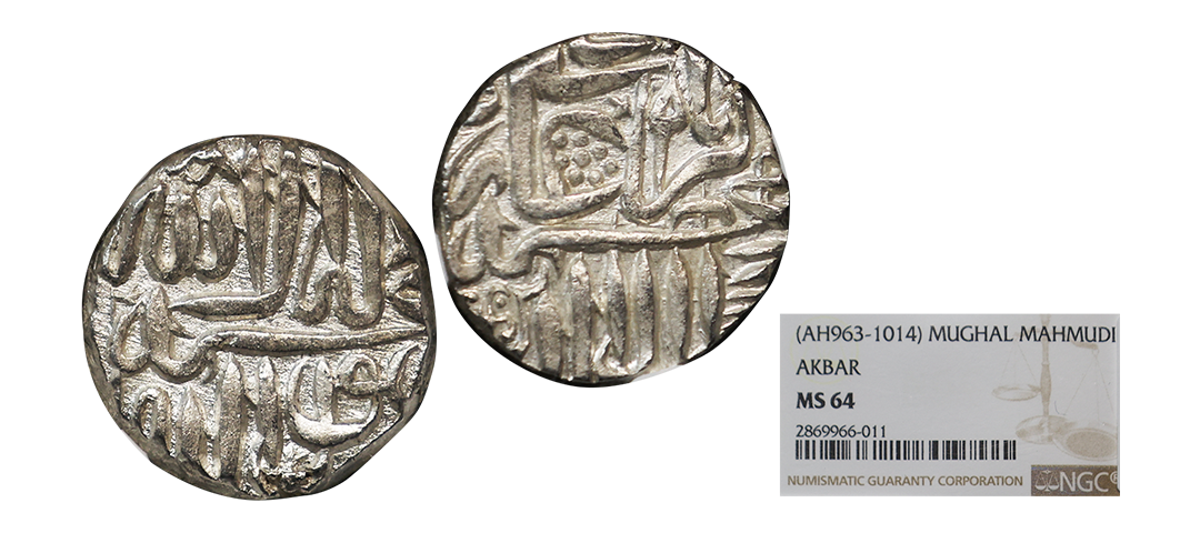 Akbar (1556-1605 AD), silver rupee, Qila Bandu mint, KM 96.1, 11.39g. Obv: Legend Riwaz i-Sikka Allahu Akbar. Rev: Legend Buwad ba Qila Bandhu Barabar. No Test Marks, Bold Strike, High Relief, Uncleaned, Beautiful Specimen, Extremely fine+, Extremely rare. The fort of Bandhavgarh which was traditionally ruled by the Baghela rulers was attacked by Akbar's forces in 1597 when a young Vikramaditya Deo Baghela ascended the throne. Vikramditya was forced to vacate the fort and thus Akbar made Rewa the capital. Similar coin Hammered in our Auction #6 for 87000.