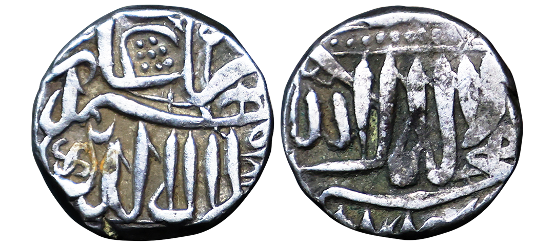 Akbar (AH 963-1014, 1556-1605 AD), Silver ½ Rupee, 5.72 gms, Surat (سورت) Mint, AH 984, Obv. Kalima Shahada withing dotted square & mint name Surat in left quadrant, Rev. Jalal-ud-din Muhammad Akbar Badhsh Ghazi with date AH984 withing dotted square, Mint State specimen with pleasing luster, Almost complete mint name on flan, Unreported, Unique, exceedingly rare. As a chaotic succession crisis unfolded for the Gujarat Sultanate, Akbar recognized that the matter of conquering Gujarat was of paramount importance. He subsequently launched his campaign from Fatehpur Sikri on the day 20 Tir, divine month, corresponding to Tuesday, 20 Safar 4th July 1572. Upon conquering Ahmedabad, Akbar received information that the Mirza rebels were in Surat. He then marched to annex the fort, arriving in its vicinity on 8 Bahman, Divine month corresponding to Monday, 7th Ramazan, 11th January 1573(AH 980), & following roughly six weeks of resistance, the fort's commandant surrendered on 26 February 1573. Akbar Surat Mint Rupees are known with dates, AH 1002 & some are known with RY 37, 38 which corresponds to AH 1001 & AH 1002. This particular coin, dated AH 984, has the earliest reported date for a silver coin from the Surat mint. One copper ½ Falus of Gujarat Standard from Surat Mint was reported with a partial date ‘AH 98x’. (JONS Vol. 237, Autumn 2019) It is also interesting that the name of the Surat mint is inscribed as 'Zurat' on later rupees, i.e. ‘ص’ instead of ‘س’. The coin bears the complete mint name 'سورت', which is insribed with a 'س'. This makes the coin a new, unreported, and unique discovery.