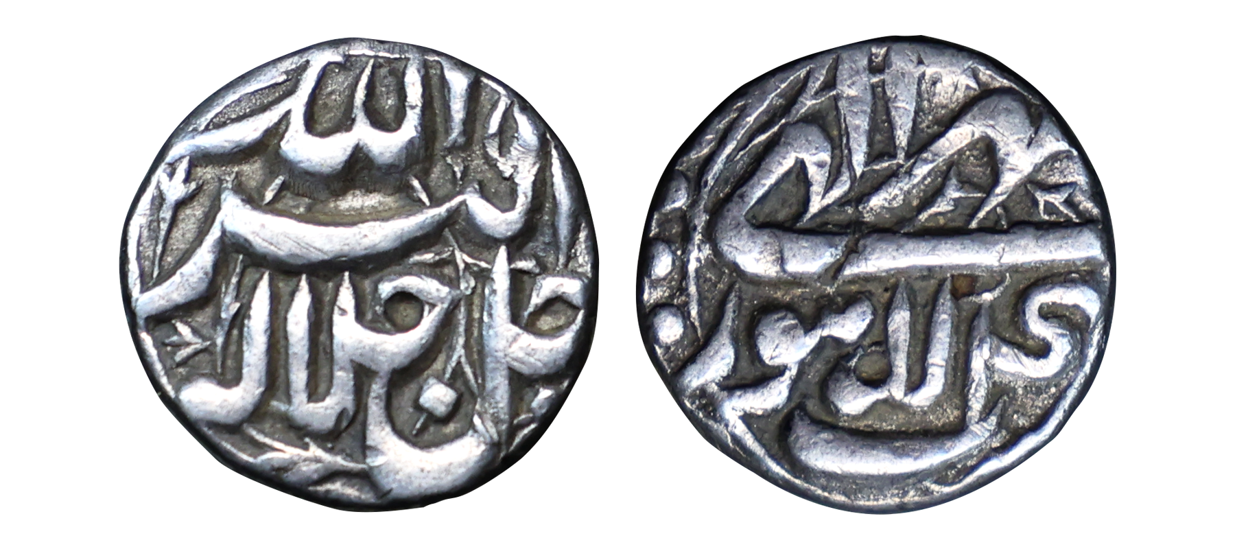 Akbar (AH 963-1014, 1556-1605 AD), Silver ½ Rupee, 5.72 gms, Surat (سورت) Mint, AH 984, Obv. Kalima Shahada withing dotted square & mint name Surat in left quadrant, Rev. Jalal-ud-din Muhammad Akbar Badhsh Ghazi with date AH984 withing dotted square, Mint State specimen with pleasing luster, Almost complete mint name on flan, Unreported, Unique, exceedingly rare. As a chaotic succession crisis unfolded for the Gujarat Sultanate, Akbar recognized that the matter of conquering Gujarat was of paramount importance. He subsequently launched his campaign from Fatehpur Sikri on the day 20 Tir, divine month, corresponding to Tuesday, 20 Safar 4th July 1572. Upon conquering Ahmedabad, Akbar received information that the Mirza rebels were in Surat. He then marched to annex the fort, arriving in its vicinity on 8 Bahman, Divine month corresponding to Monday, 7th Ramazan, 11th January 1573(AH 980), & following roughly six weeks of resistance, the fort's commandant surrendered on 26 February 1573. Akbar Surat Mint Rupees are known with dates, AH 1002 & some are known with RY 37, 38 which corresponds to AH 1001 & AH 1002. This particular coin, dated AH 984, has the earliest reported date for a silver coin from the Surat mint. One copper ½ Falus of Gujarat Standard from Surat Mint was reported with a partial date ‘AH 98x’. (JONS Vol. 237, Autumn 2019) It is also interesting that the name of the Surat mint is inscribed as 'Zurat' on later rupees, i.e. ‘ص’ instead of ‘س’. The coin bears the complete mint name 'سورت', which is insribed with a 'س'. This makes the coin a new, unreported, and unique discovery.