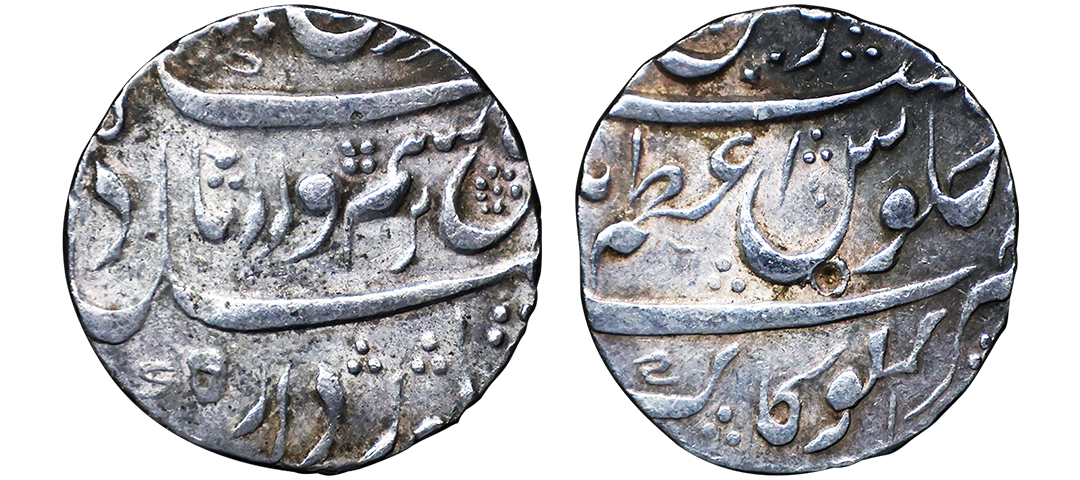 Farrukhsiyar (AH 1124-1131, 1713-1719 AD), Silver Rupee, 11.34 gms, Sholapur Mint, “Bahr-o-bar” Couplet, RY 7, Obv. Sikka zad az fazl-e-Haq bar sim-o-zar, Badshah Bahr-o-Barr Farukhsiyar, Rev. manus maimanat sanah julus zarb Sholapur, Unlisted, extremely fine, extremely rare. A Similar Specimen Sold in our past auctions for 1,00,000.
