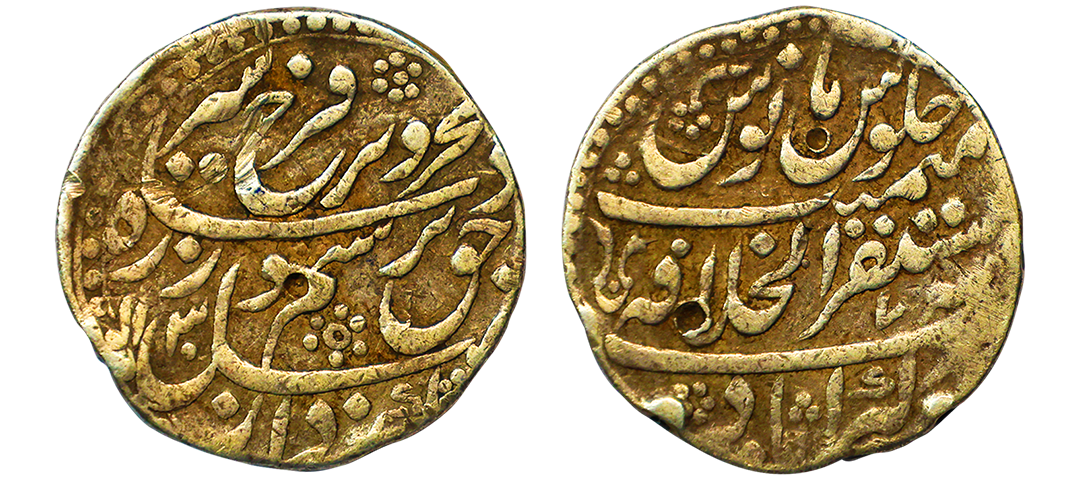 Farrukhsiyar (AH 1124-1131, 1713-1719 AD), Gold Mohur, 10.96 gms, Azimabad Mint, RY Ahd, KM # 390.7, very fine, very rare.