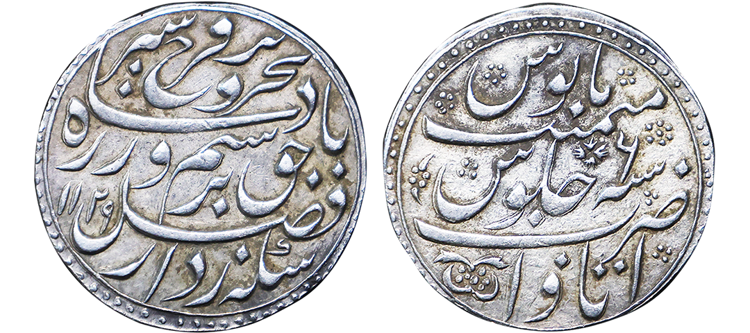 Farrukhsiyar (AH 1124-1131, 1713-1719 AD), Silver Rupee, 11.34 gms, Sholapur Mint, “Bahr-o-bar” Couplet, RY 7, Obv. Sikka zad az fazl-e-Haq bar sim-o-zar, Badshah Bahr-o-Barr Farukhsiyar, Rev. manus maimanat sanah julus zarb Sholapur, Unlisted, extremely fine, extremely rare. A Similar Specimen Sold in our past auctions for 1,00,000.