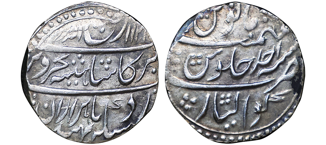 Farrukhsiyar (AH 1124-1131, 1713-1719 AD), Silver Rupee, 11.34 gms, Sholapur Mint, “Bahr-o-bar” Couplet, RY 7, Obv. Sikka zad az fazl-e-Haq bar sim-o-zar, Badshah Bahr-o-Barr Farukhsiyar, Rev. manus maimanat sanah julus zarb Sholapur, Unlisted, extremely fine, extremely rare. A Similar Specimen Sold in our past auctions for 1,00,000.