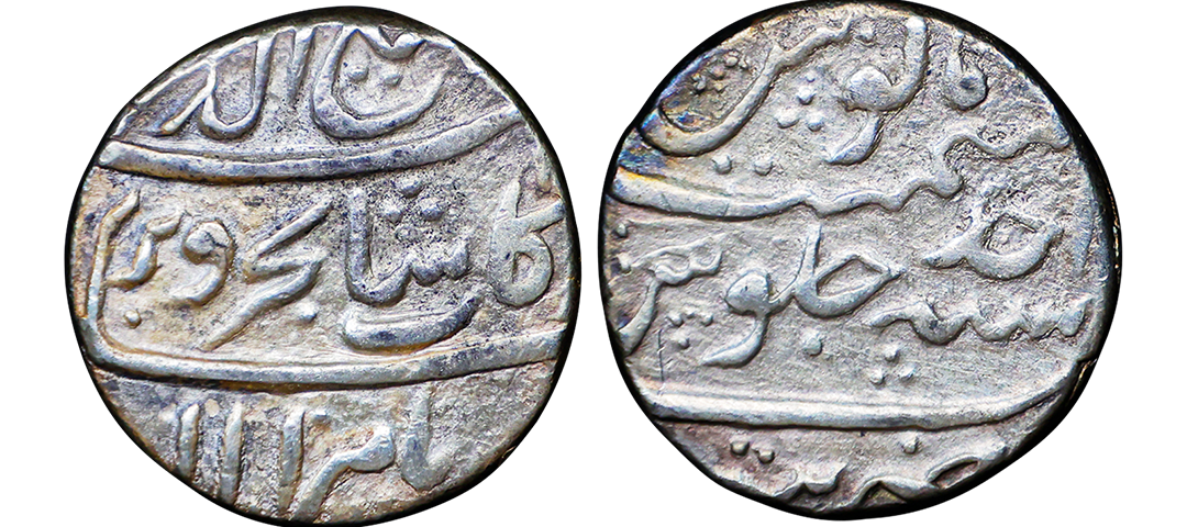 Farrukhsiyar (AH 1124-1131, 1713-1719 AD), Silver Rupee, 11.34 gms, Sholapur Mint, “Bahr-o-bar” Couplet, RY 7, Obv. Sikka zad az fazl-e-Haq bar sim-o-zar, Badshah Bahr-o-Barr Farukhsiyar, Rev. manus maimanat sanah julus zarb Sholapur, Unlisted, extremely fine, extremely rare. A Similar Specimen Sold in our past auctions for 1,00,000.