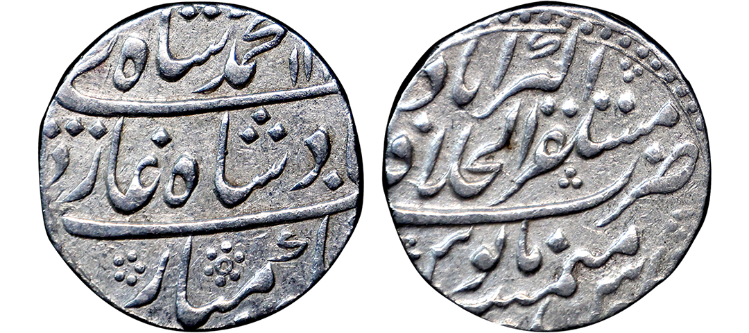 Rafi-ud-Darjat (AH 1131/1719 AD), Silver ½ Rupee, Surat Mint (by type), ‘Ba hazaran Barkat’ Couplet, Obv. sikka zad bahind bahazaraan barkaat, shahen shahe bahr-o-barr Rafi ud Darjat, Rev. manus maimanat sana julus zarb surat, KM #404.2, Graded by NGC as MS61, Top-Pop, extremely rare. Note: Fraction in Rafi-ud-Darjat are very rare, above specimen has a brilliant sharp strike with very high relief & pleasing lustre, Top-Pop(highest graded coin in NGC census).