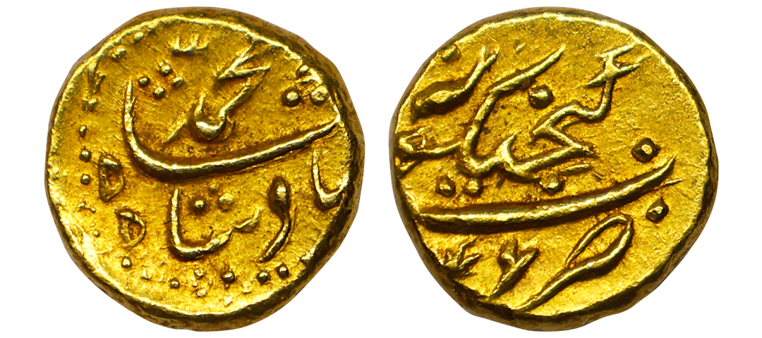 Muhammad Shah (AH 1131-1161/1719-1748 AD), Gold Pagoda, 2.81 gms, Ganjikot Mint, AH (11)46, Obv. Badshah Muhammad Shah, Rev. zarb Ganjikot, KM # E440.3, extremely fine, very rare.