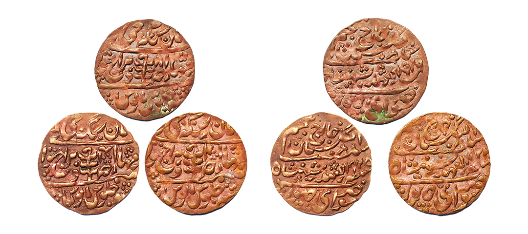 Hyderabad State, Afzal ad-Daula (AH 1273-1285, 1857-1869 AD), in the name of Asaf Jah, Nizam-ul-mulak, Gold ¼, 1/8, 1/16, Asharfi Set of 3, 2.78 gms, 1.40gms, 0.69gms, Farkhanda Bunyad Hyderabad Mint, AH 1282, Obv. Sikka Nizam-ul-mulk Bahadur Asaf Jah, Rev. zarb Farkhanda Bunyad Hyderabad manus maimanat julus, KM Y9, uncirculated, rare.
