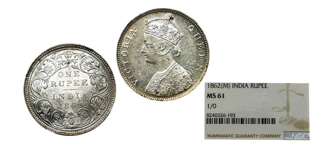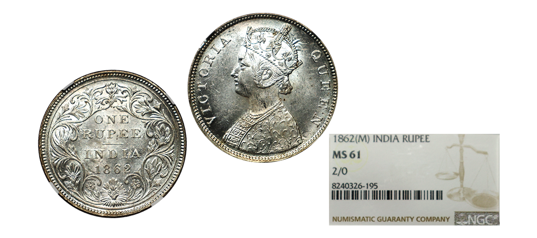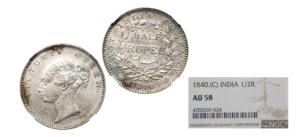 Victoria Queen, Silver 1/2 Rupee, 1840, Continuous legend, Calcutta mint, 19 berries (L-9 + R-10), Graded By NGC AU58, About Uncirculated,