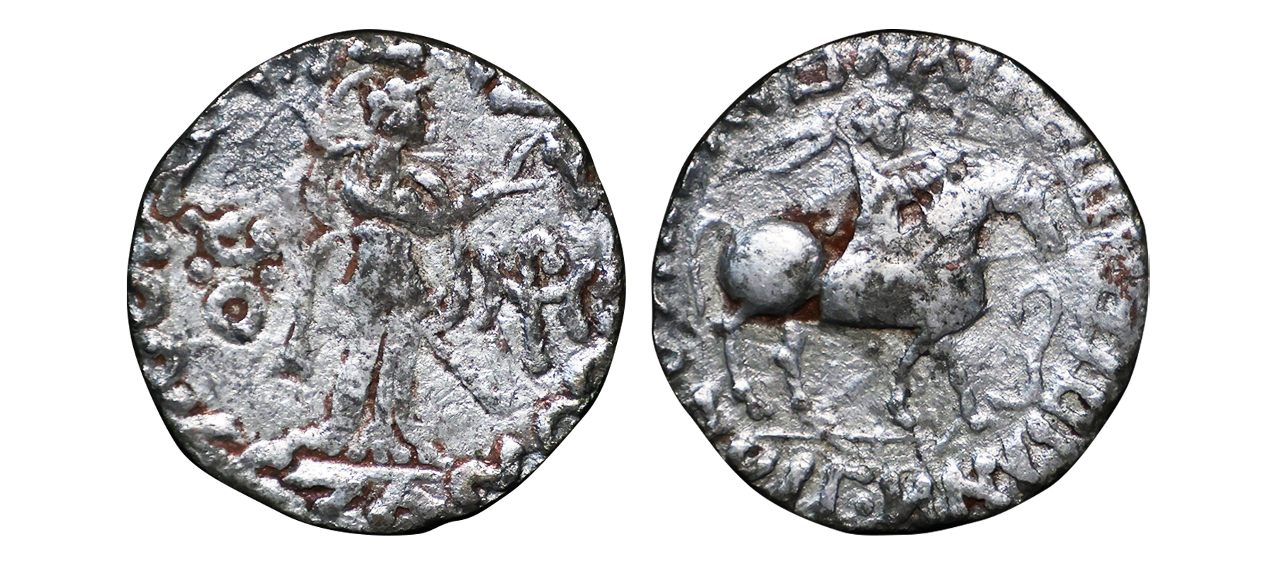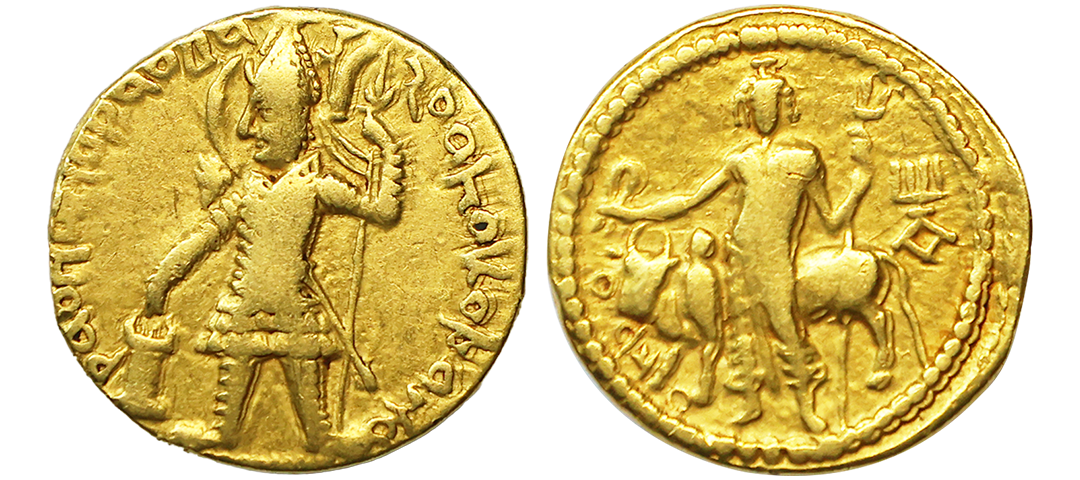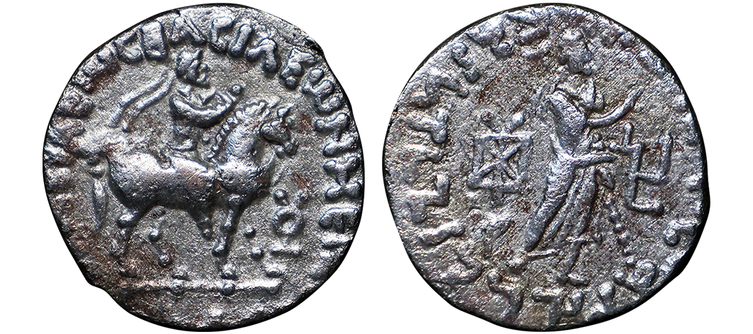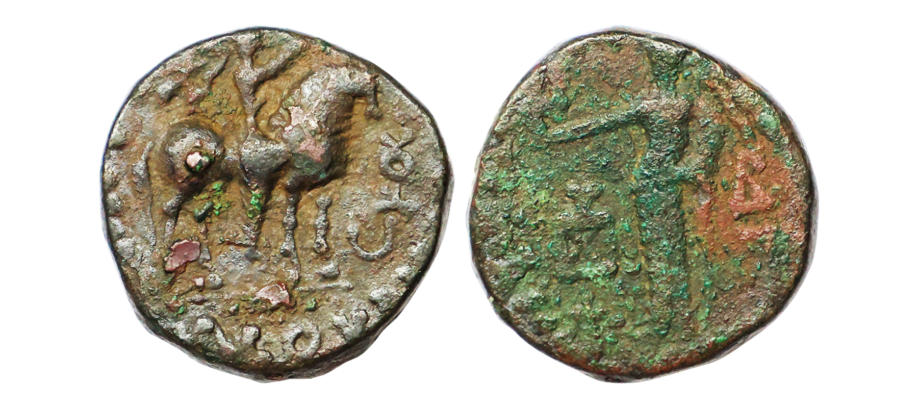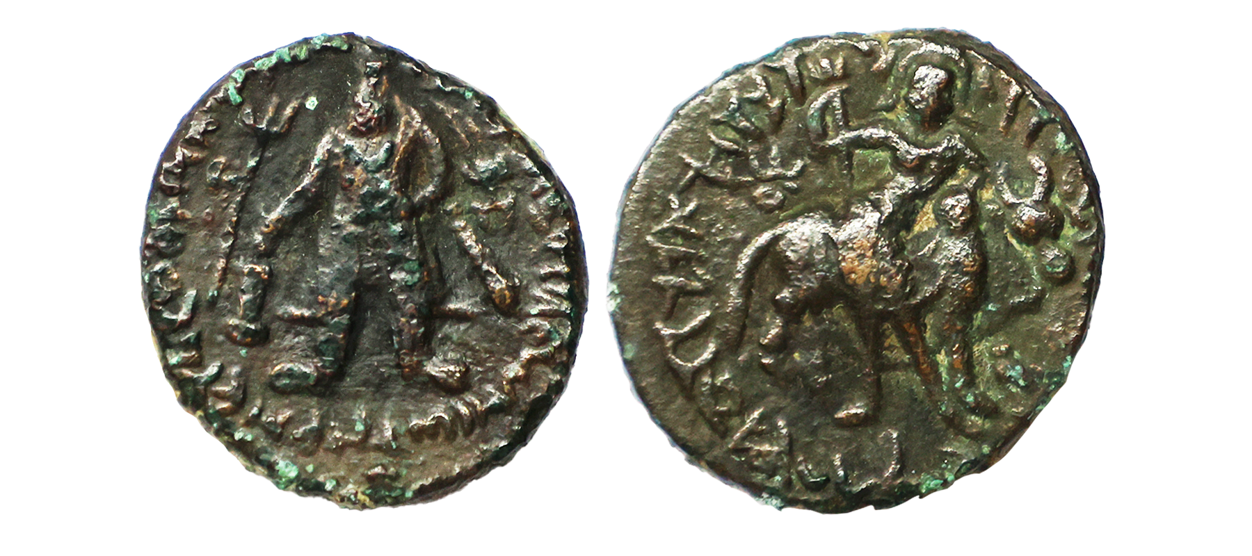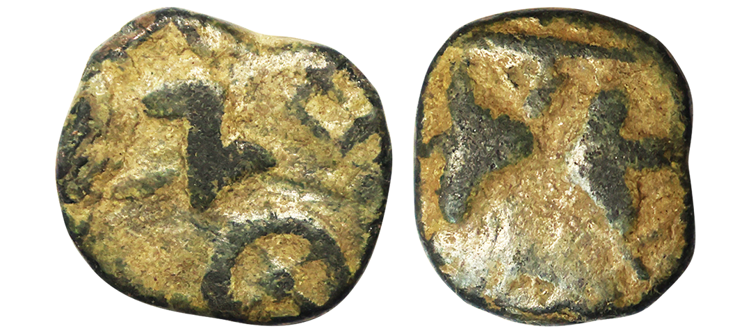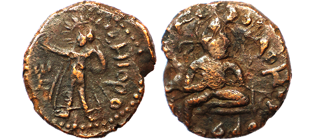 Indo Scythians, Azilises (5-45/35 BC). Copper Unit, 11.54 gms, Obv. King riding on horse, holding spear, Greek legend ‘ΒΑΣΙΛΕΩΣ ΒΑCΙΛΕΩN ΜΕΓΑΛΟΥ AZIΛIΣOY’, Rev: bull to left, monograms above, Kharoshthi legend ‘Maharajasa Rajarajasa Mahatasa Ayilishasa’ partially visible, Senior #51.1, very fine, rare.