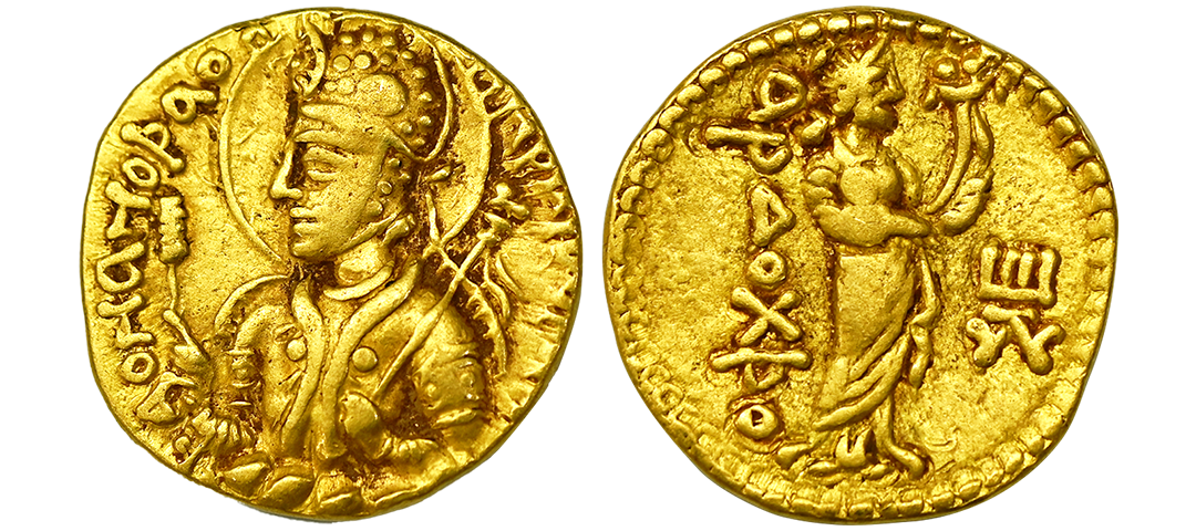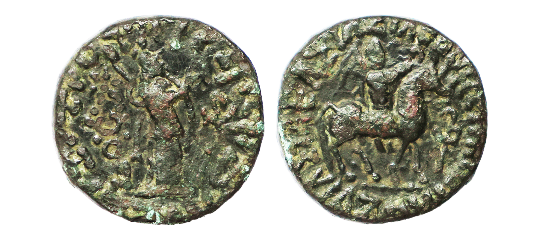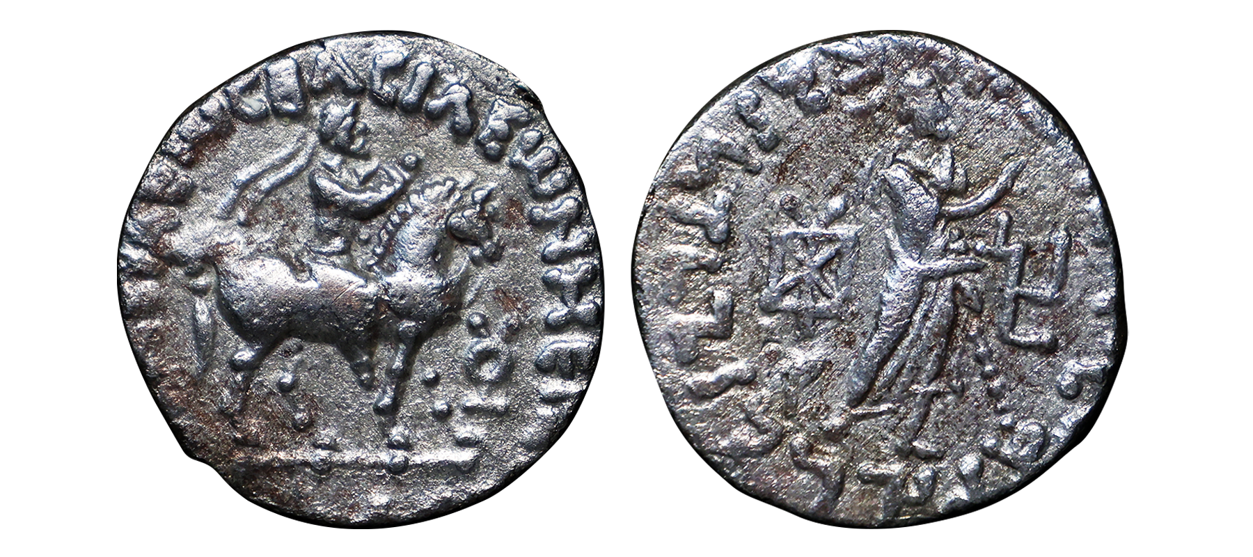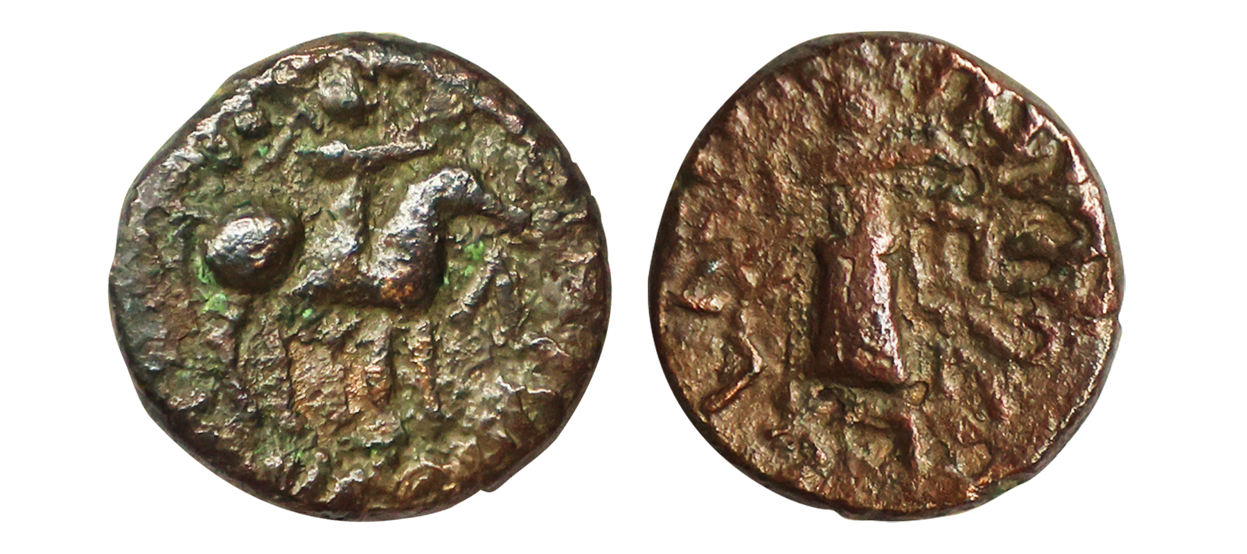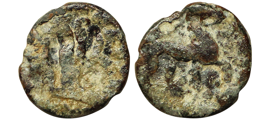 Indo Scythians, Azilises (5-45/35 BC). Copper Unit, 11.54 gms, Obv. King riding on horse, holding spear, Greek legend ‘ΒΑΣΙΛΕΩΣ ΒΑCΙΛΕΩN ΜΕΓΑΛΟΥ AZIΛIΣOY’, Rev: bull to left, monograms above, Kharoshthi legend ‘Maharajasa Rajarajasa Mahatasa Ayilishasa’ partially visible, Senior #51.1, very fine, rare.