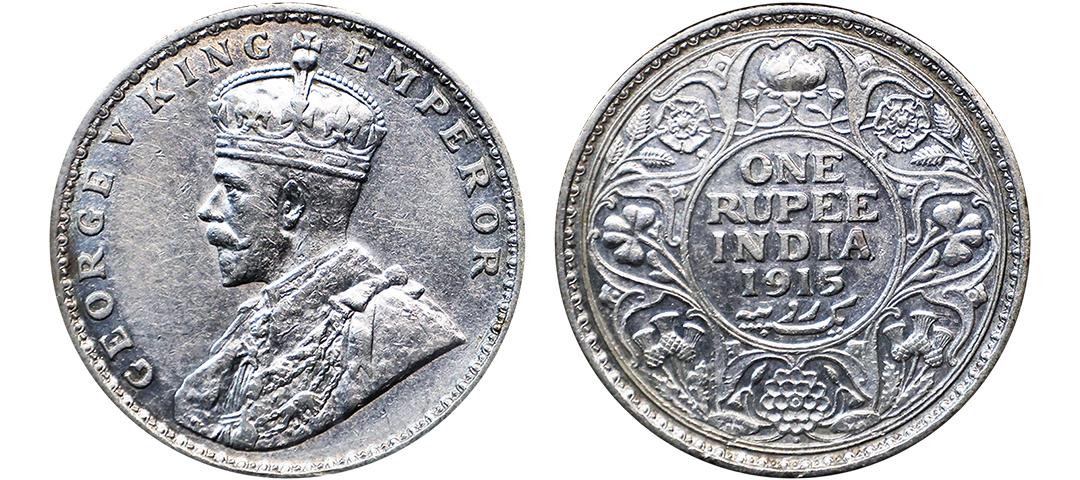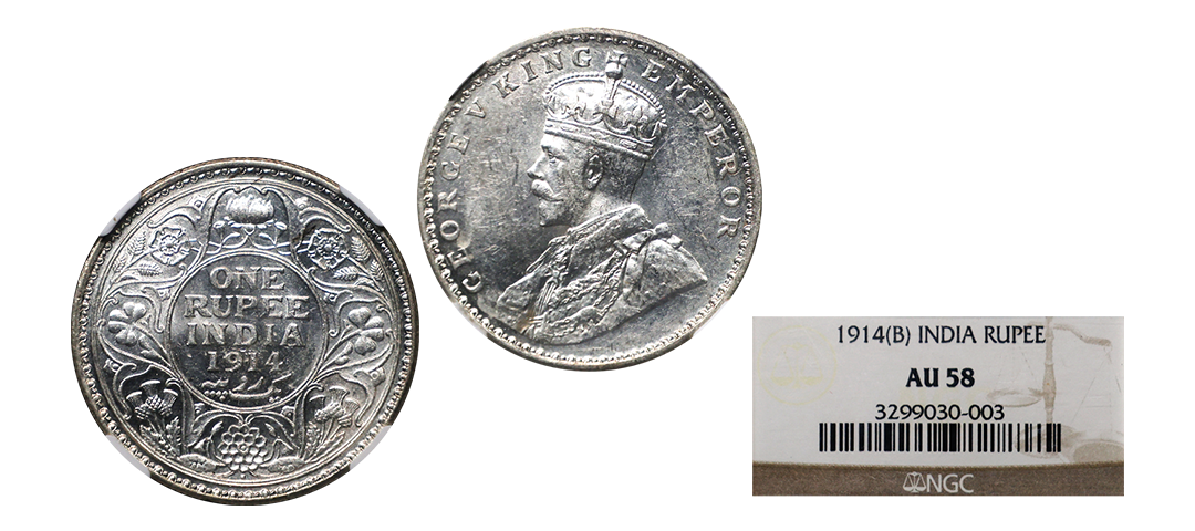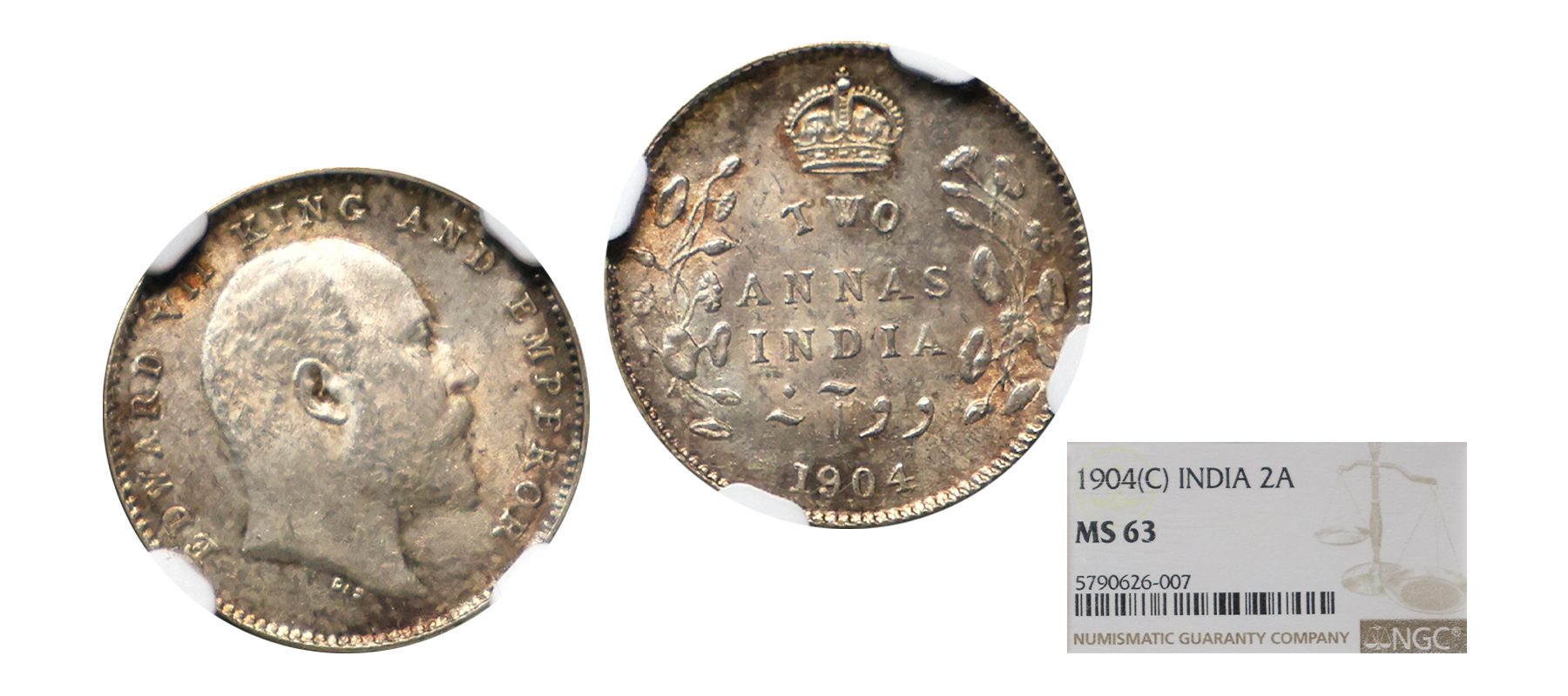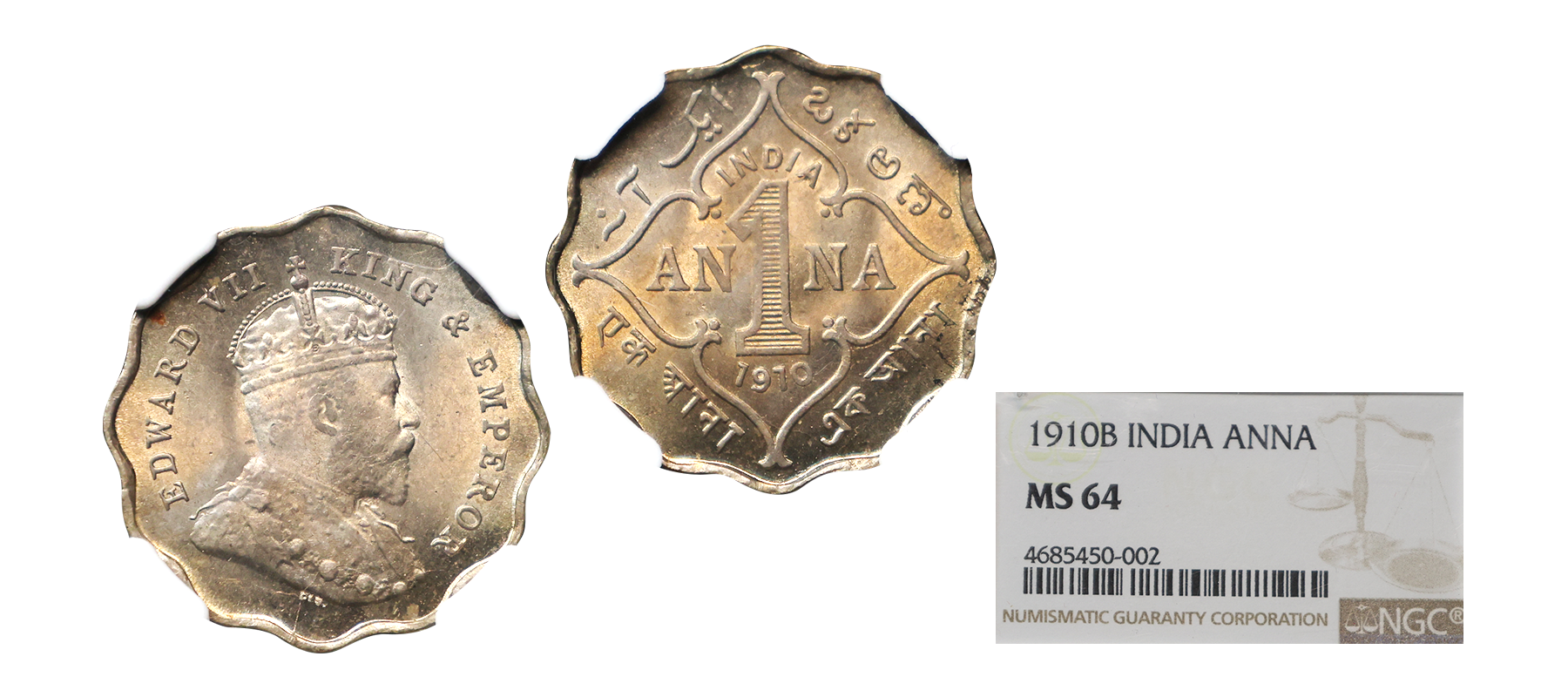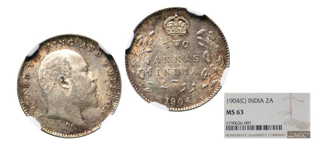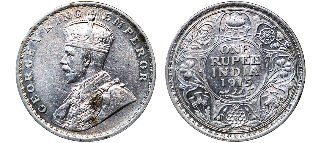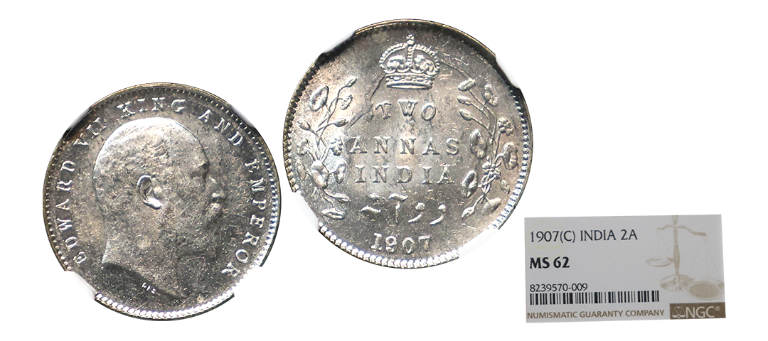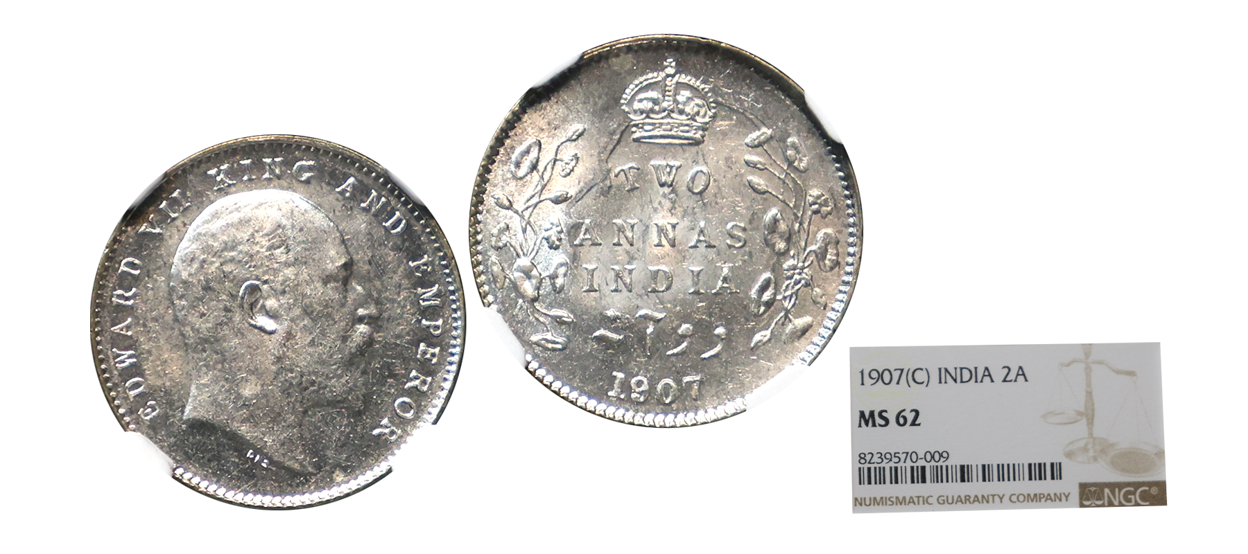 Edward VII, Silver Rupee, 1908/7 overdate, Without b incuse at top and only dot on vine, very rare.