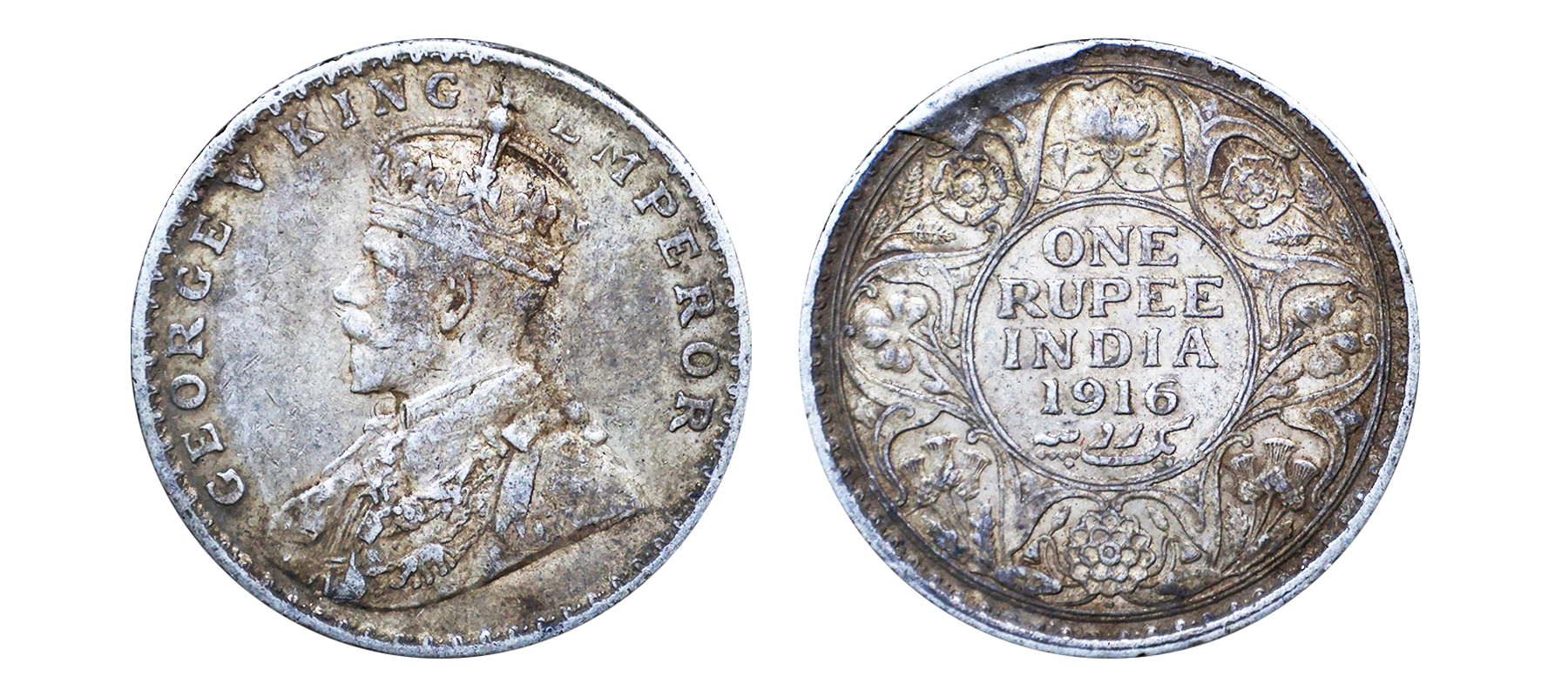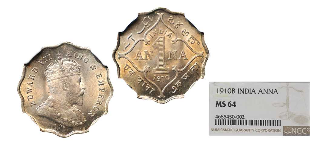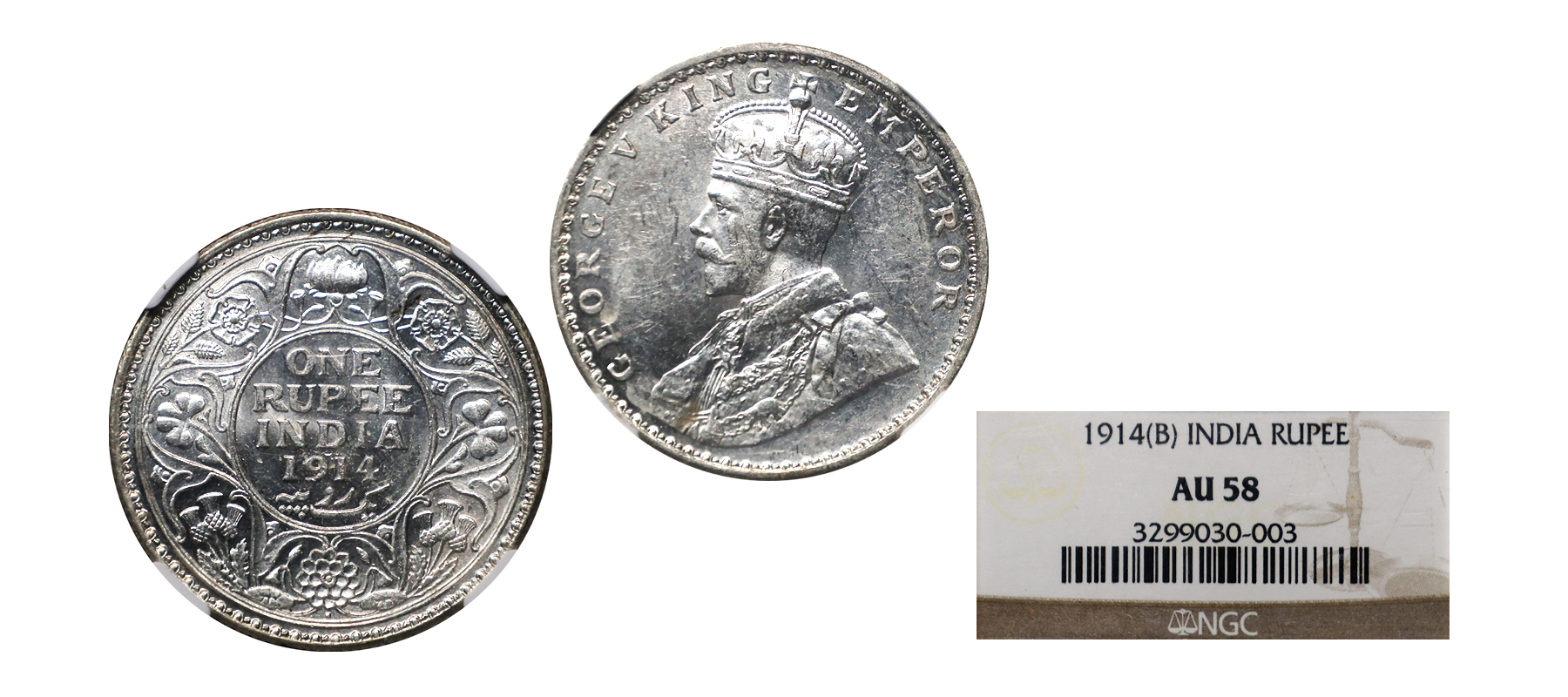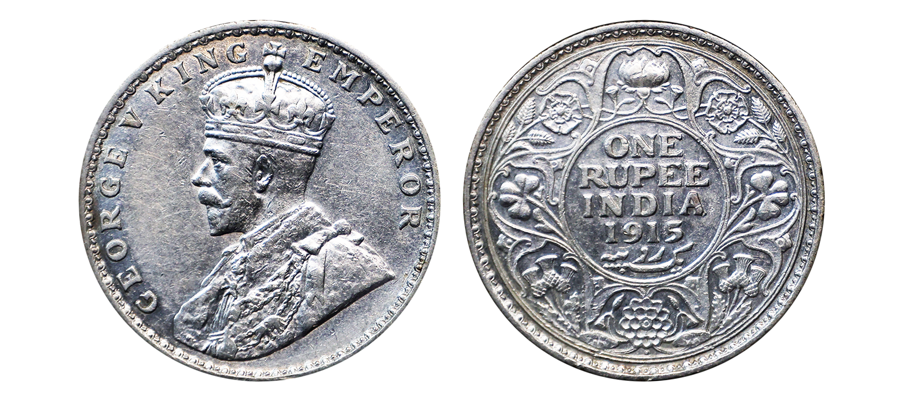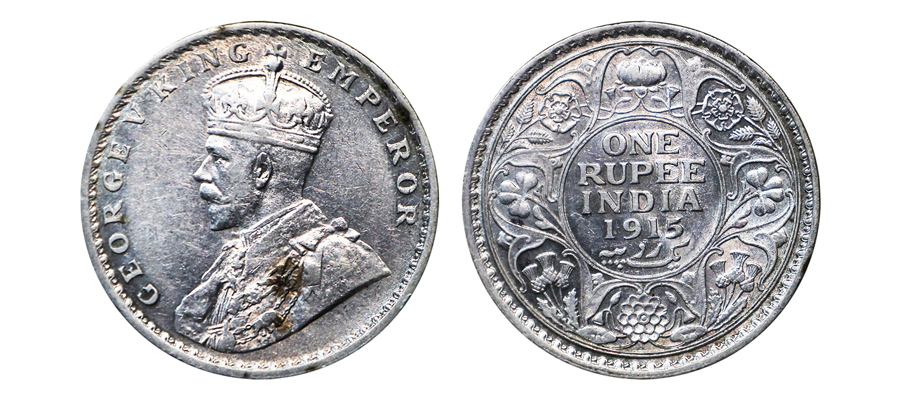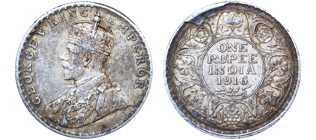 Edward VII, Silver Rupee, 1908/7 overdate, Without b incuse at top and only dot on vine, very rare.