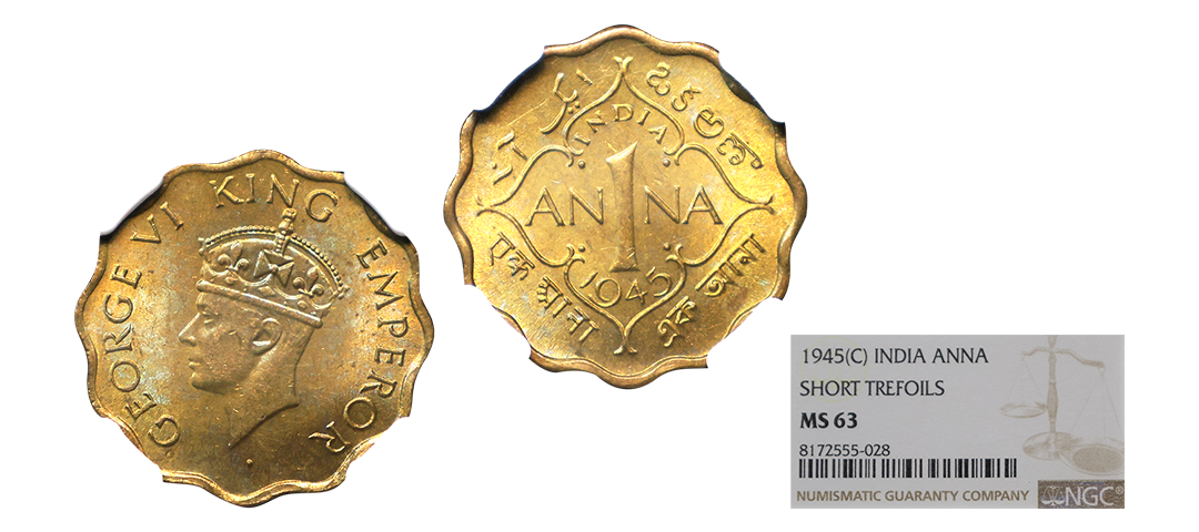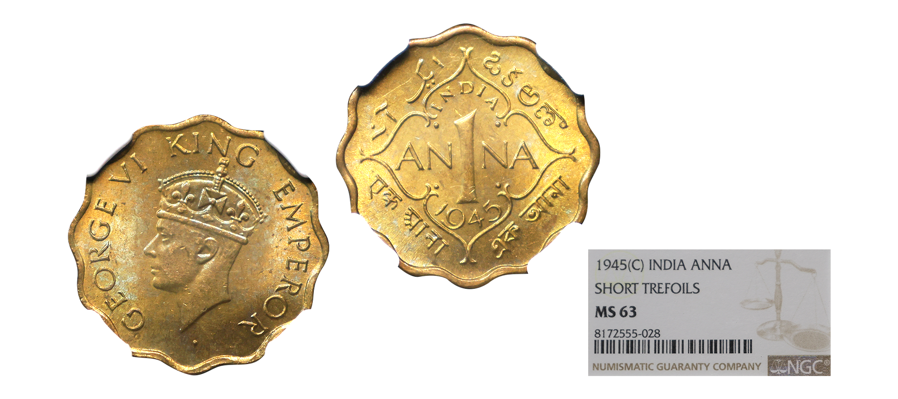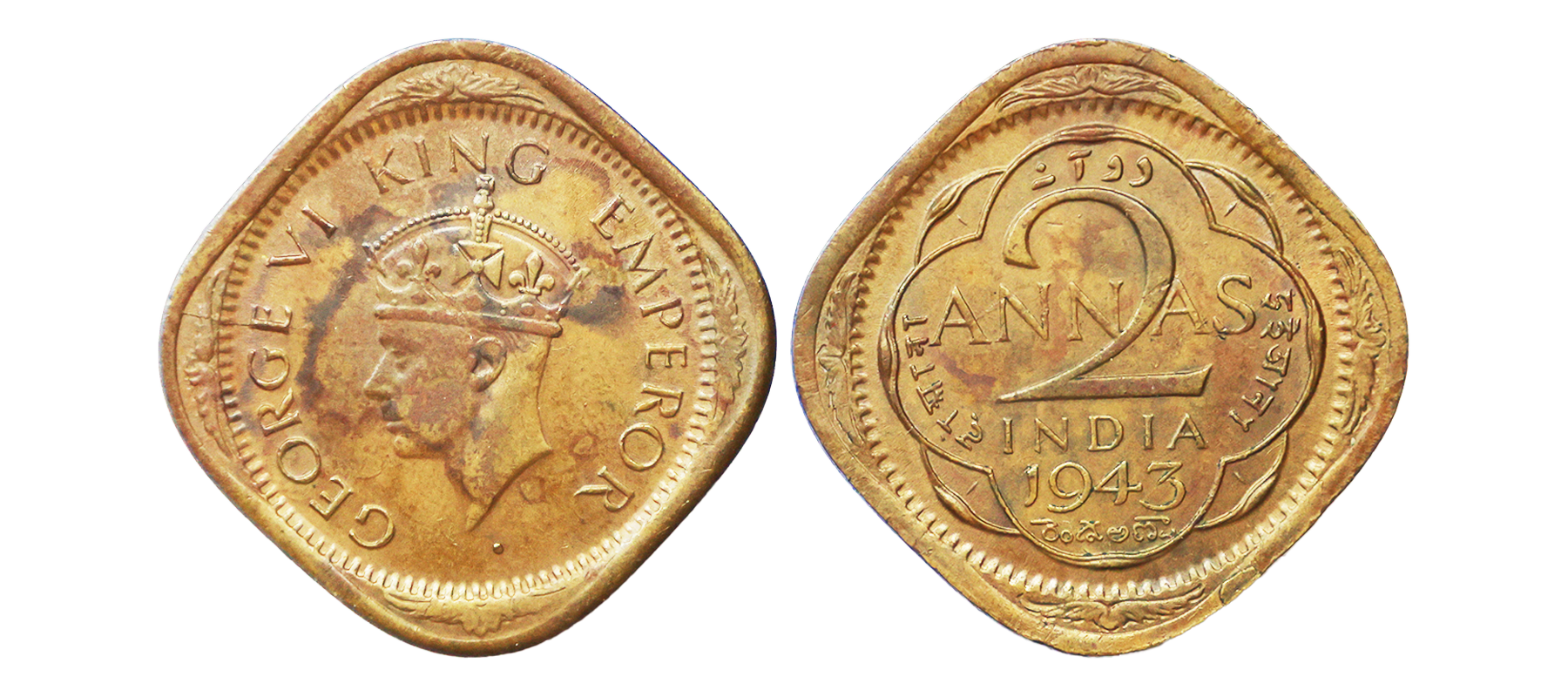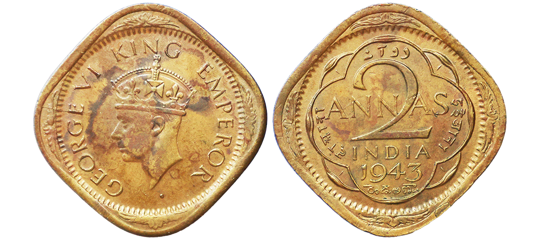 George VI, Nickel-Brass 2 Annas, 1943, Calcutta Mint, Large 3, T/II, (Unlisted in PR&GK), very fine, very rare.
