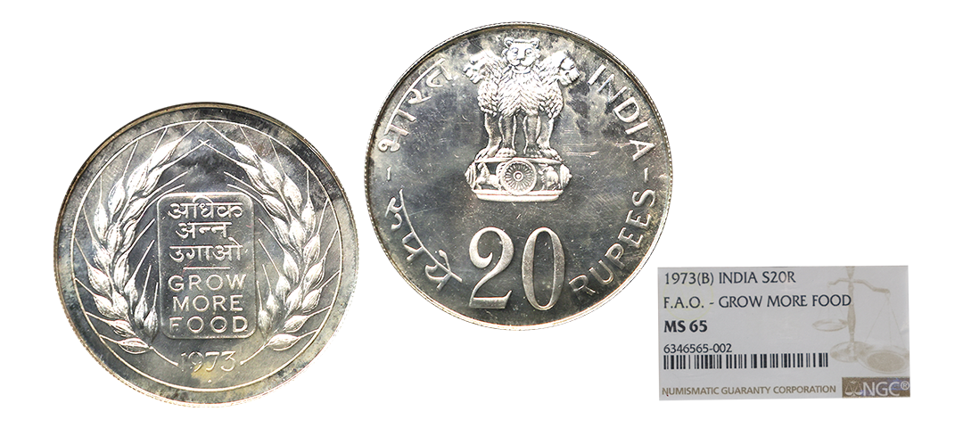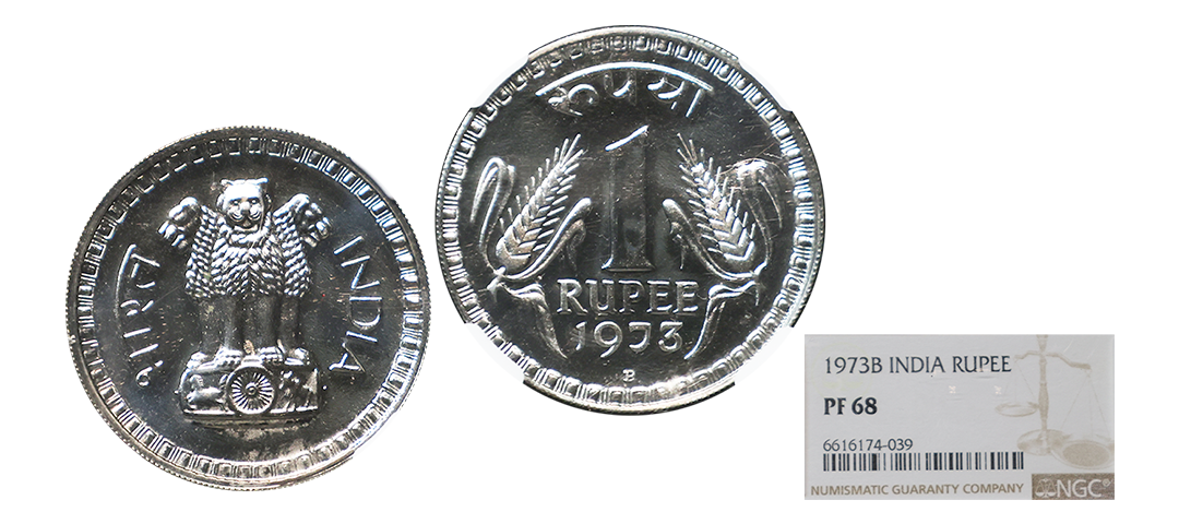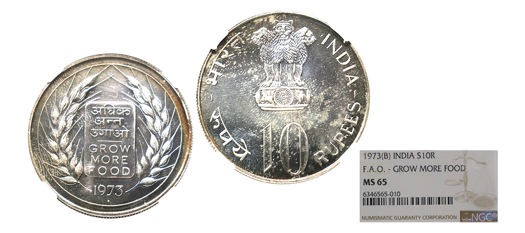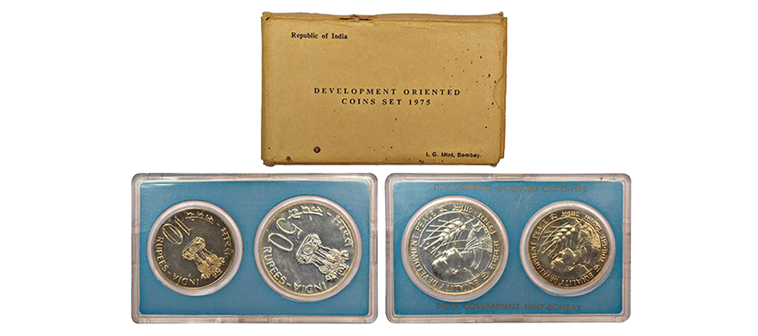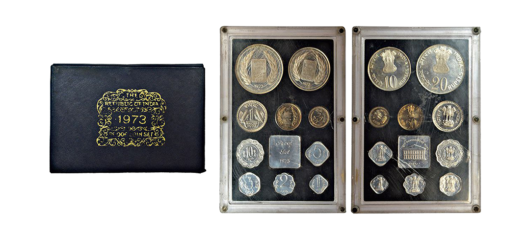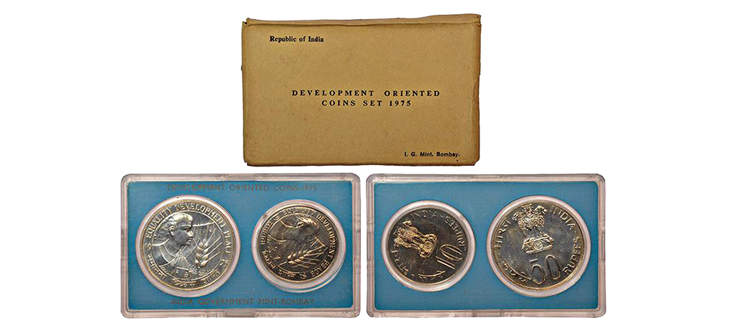 1971, Food for All, VIP Proof set of 9 coins, 10 rupees, 1 rupee, 50 paise, 20 paise, 10 paise, 5 paise, 3 paise, 2 paise and 1 paisa, Bombay mint, RB 27, in original mint packing
