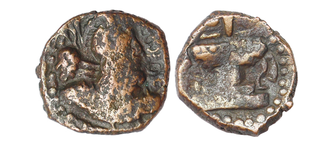 Kushans, Huvishka (155-190 AD), Gold Dinar, 7.83 gms, Nana Type, Obv. Crowned, Diademed and Robed bust of king to left, holding mace scepter in right hand and filleted spear in left, Blurred Bactrian legend around ‘þAONANOþAO - OOηþKIKOþANO’, Rev. ИωИYO (sic) to left, Nana wearing fillet and crescent, standing right, holding scepter and box, tamgha to right dotted borders around, MK 357(O2R42), very fine, very rare variety.