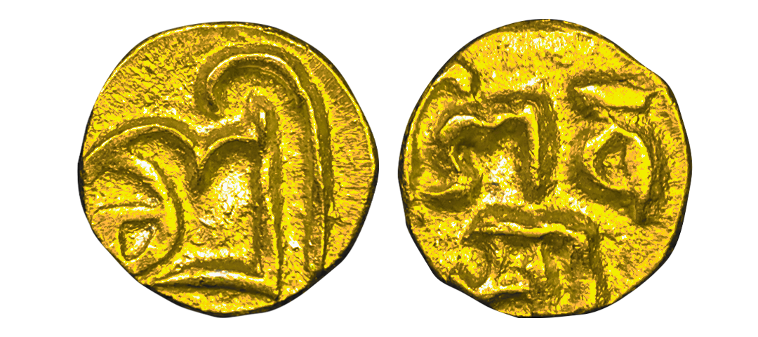 Nepal, Shiva Simha, Malla Dynasty (1578-1619 AD), Gold Mashaka, 0.90 gms, Obverse: 'Shri' in Maithili/Newari script, Reverse: ‘Shivasya’ in two lines in Maithili/Newari script, Rhodes # 168/169, very fine, very scarce.