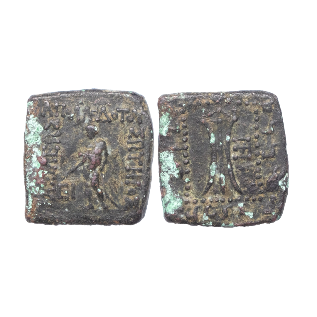 Ancient, Indo-Greeks, Apollodotus I (c. 174-165 BC), Silver Drachma (Indian Standard), 2.35 gms, Obv. Elephant walking right. Monogram below. Greek Legend around ‘BAΣIΛEΩΣ AΠOΛΛOΔOTOY ΣΩTHPOΣ’, Rev. Humped Bull to right. Monogram below.Kharoshthi legend around ‘MaharajasaApaladatasaTratarasa’, about very fine, rare.