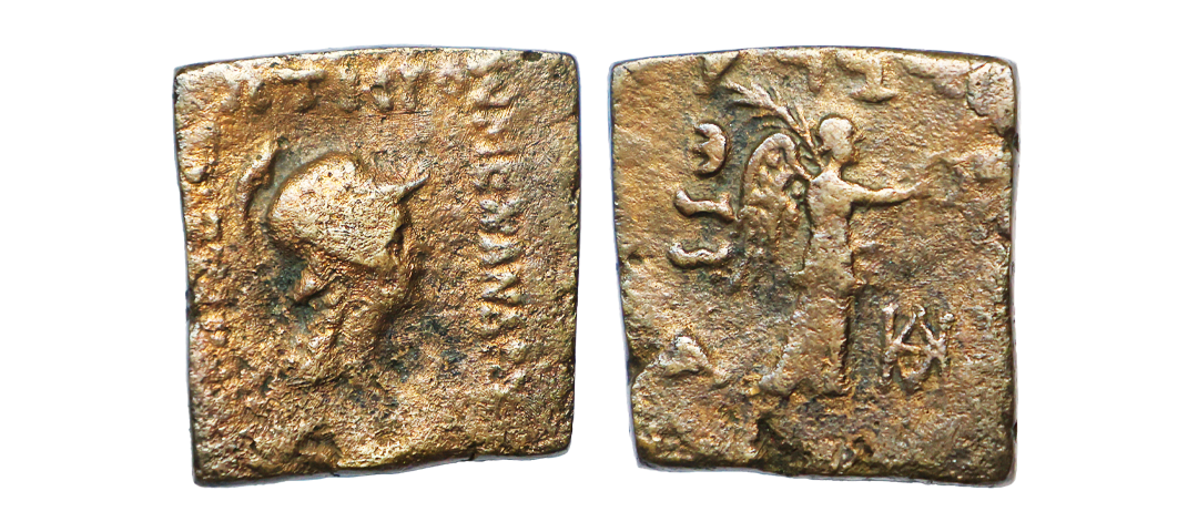 Ancient, Indo-Greeks, Apollodotus I (c. 174-165 BC), Silver Drachma (Indian Standard), 2.35 gms, Obv. Elephant walking right. Monogram below. Greek Legend around ‘BAΣIΛEΩΣ AΠOΛΛOΔOTOY ΣΩTHPOΣ’, Rev. Humped Bull to right. Monogram below.Kharoshthi legend around ‘MaharajasaApaladatasaTratarasa’, about very fine, rare.