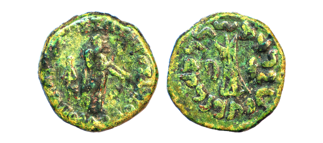 Ancient, Indo-Greeks, Apollodotus I (c. 174-165 BC), Silver Drachma (Indian Standard), 2.35 gms, Obv. Elephant walking right. Monogram below. Greek Legend around ‘BAΣIΛEΩΣ AΠOΛΛOΔOTOY ΣΩTHPOΣ’, Rev. Humped Bull to right. Monogram below.Kharoshthi legend around ‘MaharajasaApaladatasaTratarasa’, about very fine, rare.