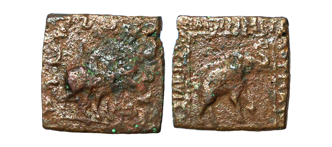 Ancient, Indo-Greeks, Apollodotus I (c. 174-165 BC), Silver Drachma (Indian Standard), 2.35 gms, Obv. Elephant walking right. Monogram below. Greek Legend around ‘BAΣIΛEΩΣ AΠOΛΛOΔOTOY ΣΩTHPOΣ’, Rev. Humped Bull to right. Monogram below.Kharoshthi legend around ‘MaharajasaApaladatasaTratarasa’, about very fine, rare.