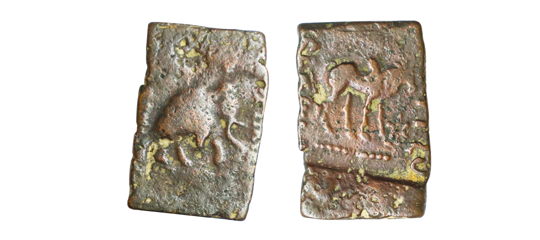 Ancient, Indo-Greeks, Apollodotus I (c. 174-165 BC), Silver Drachma (Indian Standard), 2.35 gms, Obv. Elephant walking right. Monogram below. Greek Legend around ‘BAΣIΛEΩΣ AΠOΛΛOΔOTOY ΣΩTHPOΣ’, Rev. Humped Bull to right. Monogram below.Kharoshthi legend around ‘MaharajasaApaladatasaTratarasa’, about very fine, rare.