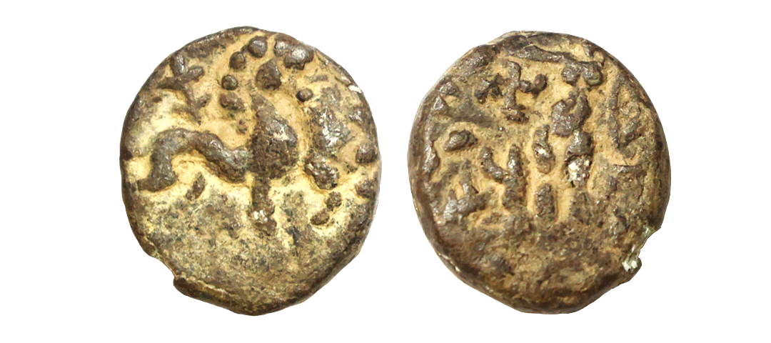 Ancient, Indo-Greeks, Apollodotus I (c. 174-165 BC), Silver Drachma (Indian Standard), 2.35 gms, Obv. Elephant walking right. Monogram below. Greek Legend around ‘BAΣIΛEΩΣ AΠOΛΛOΔOTOY ΣΩTHPOΣ’, Rev. Humped Bull to right. Monogram below.Kharoshthi legend around ‘MaharajasaApaladatasaTratarasa’, about very fine, rare.