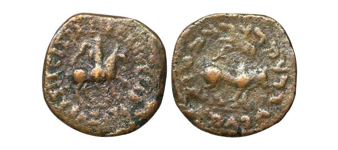 Ancient, Indo-Greeks, Apollodotus I (c. 174-165 BC), Silver Drachma (Indian Standard), 2.35 gms, Obv. Elephant walking right. Monogram below. Greek Legend around ‘BAΣIΛEΩΣ AΠOΛΛOΔOTOY ΣΩTHPOΣ’, Rev. Humped Bull to right. Monogram below.Kharoshthi legend around ‘MaharajasaApaladatasaTratarasa’, about very fine, rare.