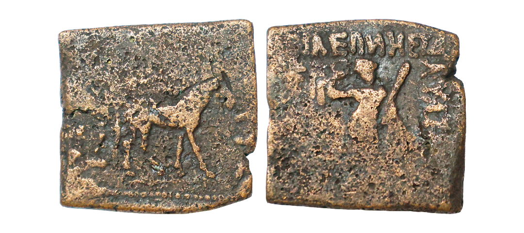 Ancient, Indo-Greeks, Apollodotus I (c. 174-165 BC), Silver Drachma (Indian Standard), 2.35 gms, Obv. Elephant walking right. Monogram below. Greek Legend around ‘BAΣIΛEΩΣ AΠOΛΛOΔOTOY ΣΩTHPOΣ’, Rev. Humped Bull to right. Monogram below.Kharoshthi legend around ‘MaharajasaApaladatasaTratarasa’, about very fine, rare.