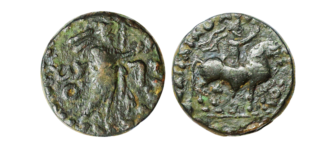 Ancient, Indo-Greeks, Apollodotus I (c. 174-165 BC), Silver Drachma (Indian Standard), 2.35 gms, Obv. Elephant walking right. Monogram below. Greek Legend around ‘BAΣIΛEΩΣ AΠOΛΛOΔOTOY ΣΩTHPOΣ’, Rev. Humped Bull to right. Monogram below.Kharoshthi legend around ‘MaharajasaApaladatasaTratarasa’, about very fine, rare.