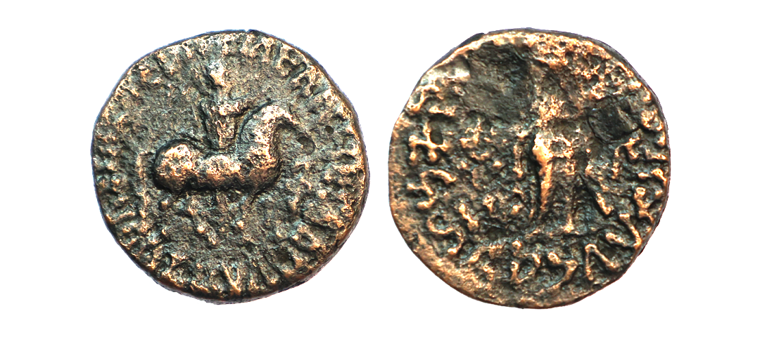 Ancient, Indo-Greeks, Apollodotus I (c. 174-165 BC), Silver Drachma (Indian Standard), 2.35 gms, Obv. Elephant walking right. Monogram below. Greek Legend around ‘BAΣIΛEΩΣ AΠOΛΛOΔOTOY ΣΩTHPOΣ’, Rev. Humped Bull to right. Monogram below.Kharoshthi legend around ‘MaharajasaApaladatasaTratarasa’, about very fine, rare.