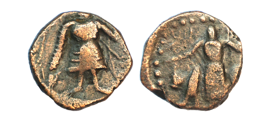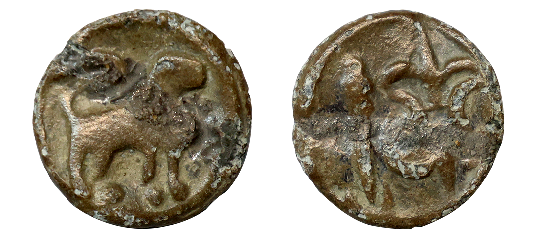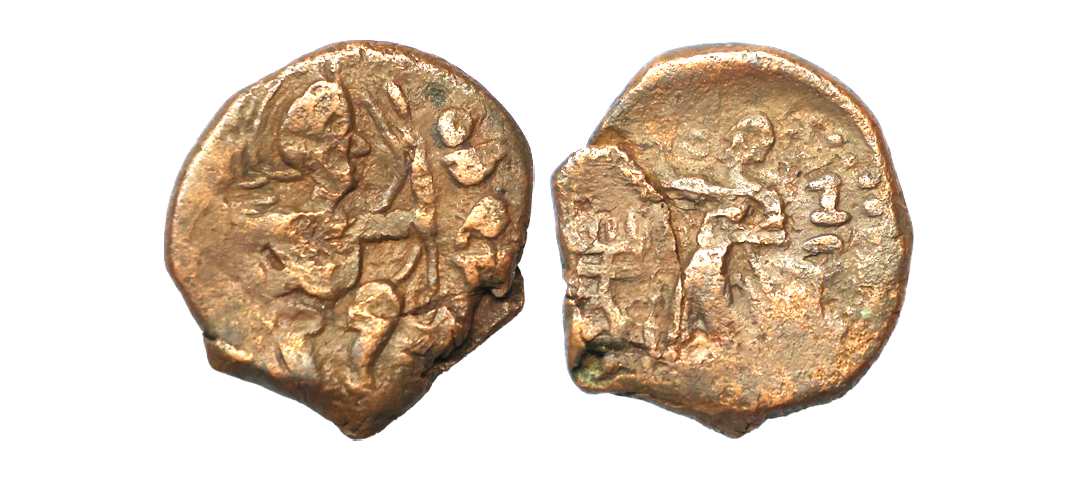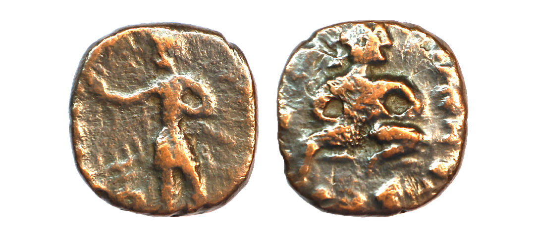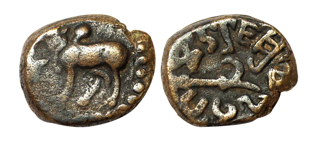 Ancient, Western Kshatrapas, Kardamaka family, Damasena Fractional Potin Unit, 0.81 gms, traces of date seen on reverse, fine, scarce.