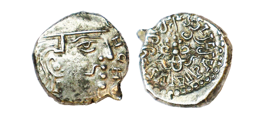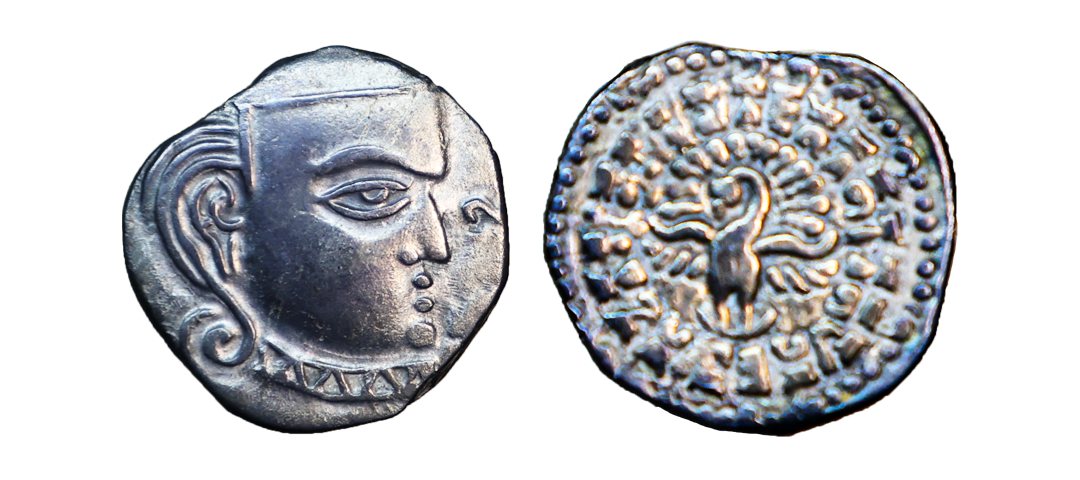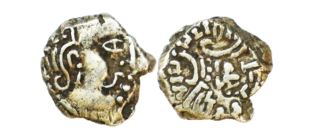 Gupta Empire, Kumaragupta I (409-455 AD), Silver Dramma, 2.33 gms, Obv. Bust of king to right, Rev. Stylized Garuda at centre standing facing with wings spread, Brahmi legend around reading ‘Paramabhagavata Maharajadhiraja Shri KumaraguptaMahendraditya’, Pieper # 3562, very fine+, scarce
