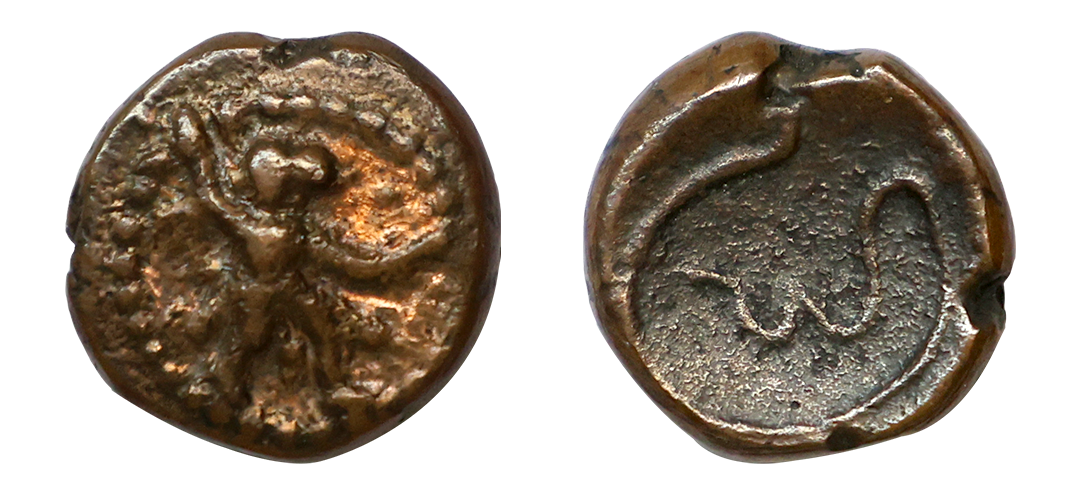 Delhi Sultanate, Muizz al-Din Kaiqubad (AH 686-689, 1287-1290 AD), Billon Three Gani, 3.63 gms, Hazrat Dehli Mint, Obverse on the coin reads, ‘Al-sultan al-a’zam mu’izz al-dunya wa’l din, Reverse on the coin reads. ‘Kaiqubad in Arabic sri sultan mu’izuddin in Nagari, G&G # D183, very fine, scarce.
