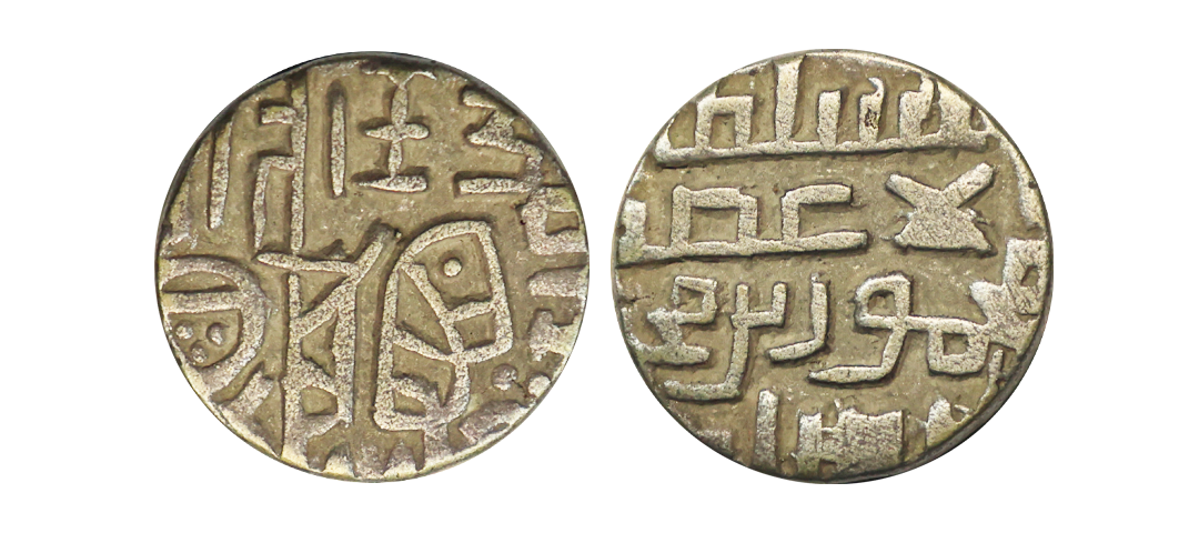 Delhi Sultanate, Muizz al-Din Kaiqubad (AH 686-689, 1287-1290 AD), Billon Three Gani, 3.63 gms, Hazrat Dehli Mint, Obverse on the coin reads, ‘Al-sultan al-a’zam mu’izz al-dunya wa’l din, Reverse on the coin reads. ‘Kaiqubad in Arabic sri sultan mu’izuddin in Nagari, G&G # D183, very fine, scarce.