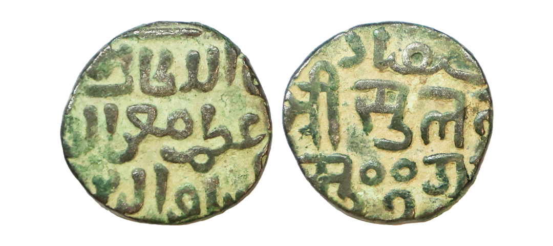 Delhi Sultanate, Muizz al-Din Kaiqubad (AH 686-689, 1287-1290 AD), Billon Three Gani, 3.63 gms, Hazrat Dehli Mint, Obverse on the coin reads, ‘Al-sultan al-a’zam mu’izz al-dunya wa’l din, Reverse on the coin reads. ‘Kaiqubad in Arabic sri sultan mu’izuddin in Nagari, G&G # D183, very fine, scarce.