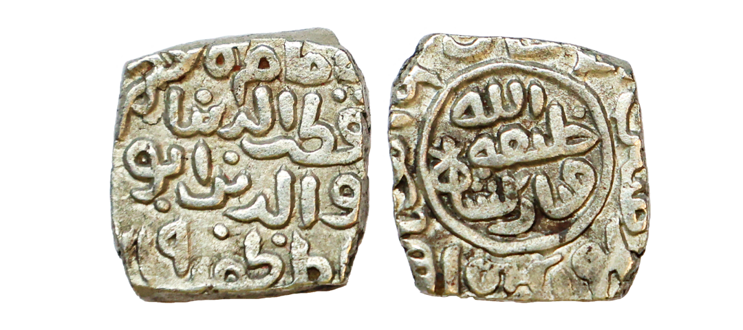 Delhi Sultanate, Muizz al-Din Kaiqubad (AH 686-689, 1287-1290 AD), Billon Three Gani, 3.63 gms, Hazrat Dehli Mint, Obverse on the coin reads, ‘Al-sultan al-a’zam mu’izz al-dunya wa’l din, Reverse on the coin reads. ‘Kaiqubad in Arabic sri sultan mu’izuddin in Nagari, G&G # D183, very fine, scarce.