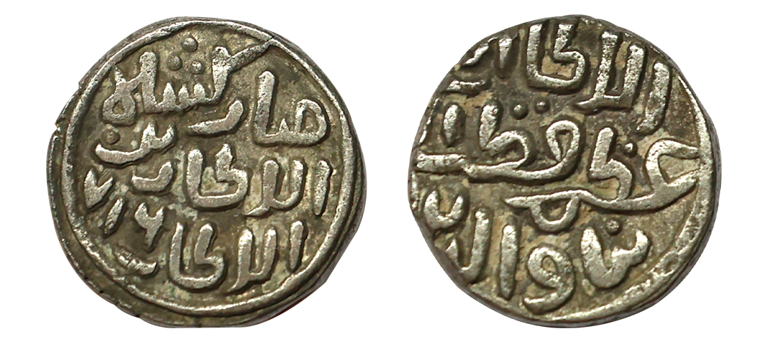 Delhi Sultanate, Muizz al-Din Kaiqubad (AH 686-689, 1287-1290 AD), Billon Three Gani, 3.63 gms, Hazrat Dehli Mint, Obverse on the coin reads, ‘Al-sultan al-a’zam mu’izz al-dunya wa’l din, Reverse on the coin reads. ‘Kaiqubad in Arabic sri sultan mu’izuddin in Nagari, G&G # D183, very fine, scarce.