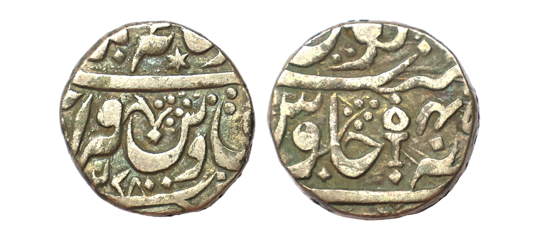 Mysore, Krishna Raja Wodeyar (AH 1225-1285, 1810-1868 AD), Copper 20 Cash, 9.07 gms, Obv. elephant to left with legend Kanarese "Sri" between sun and moon, Rev. Kanarese legend in 3 lines, denomination in English at the bottom, KM # C177a, very fine+, very scarce.