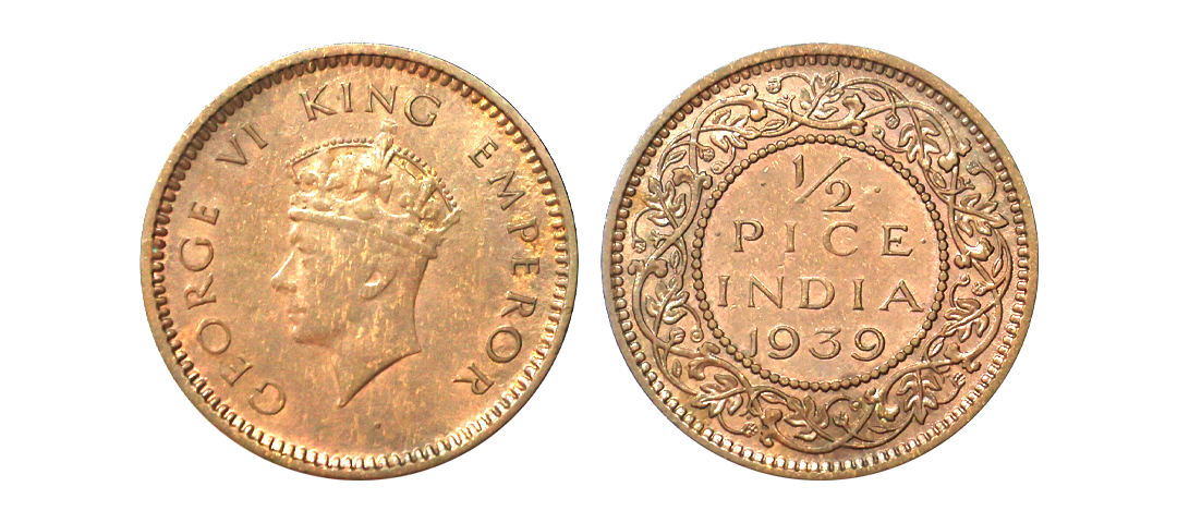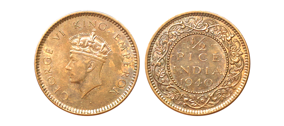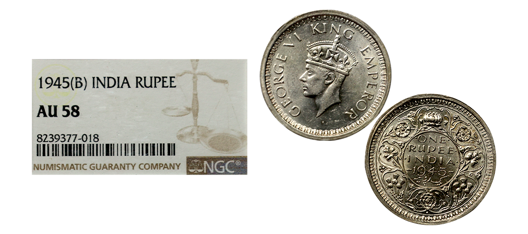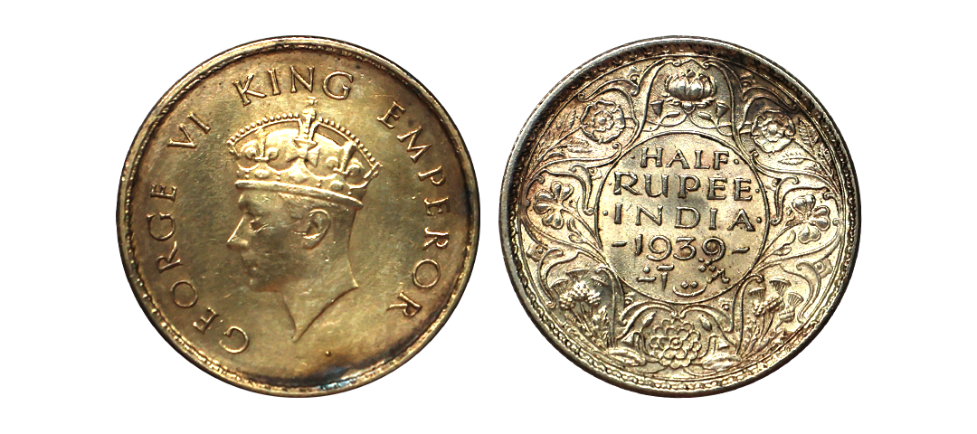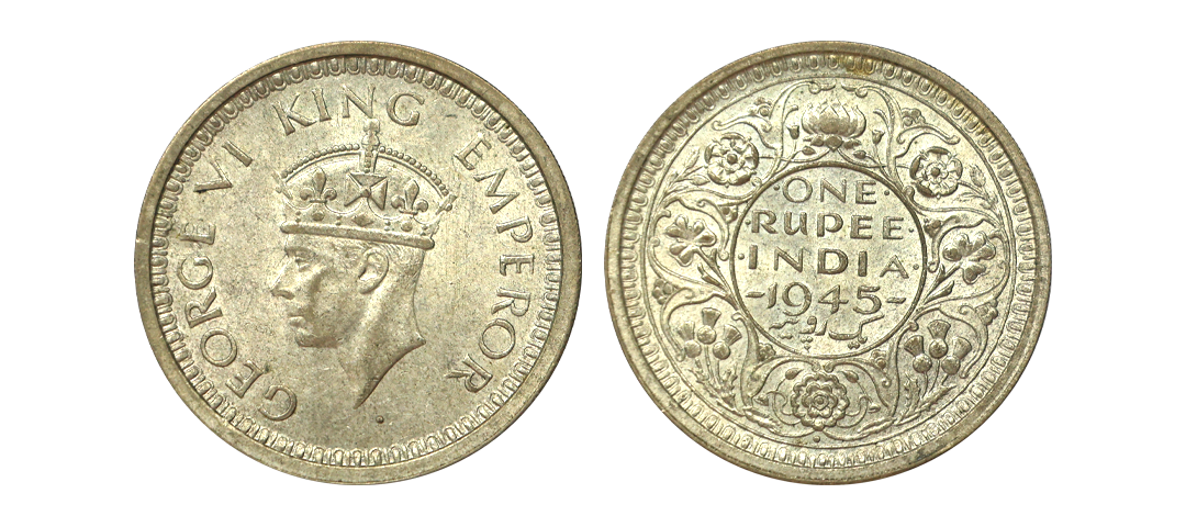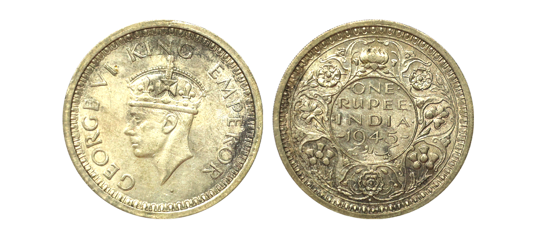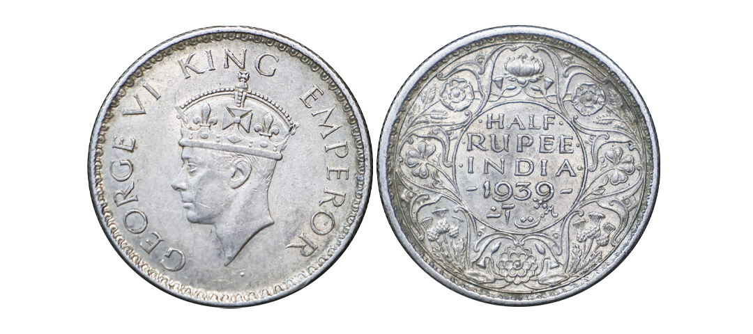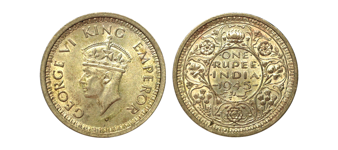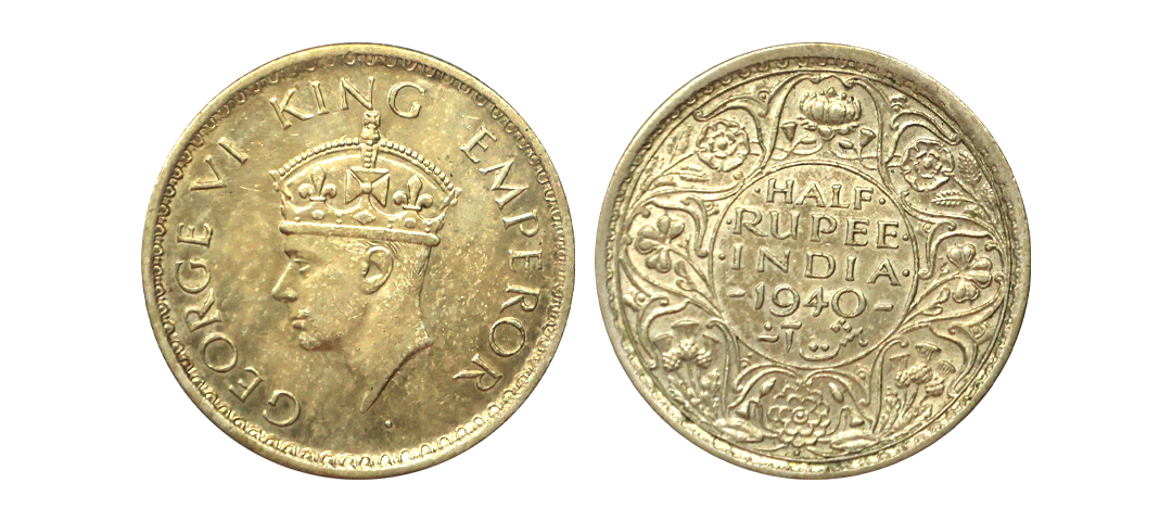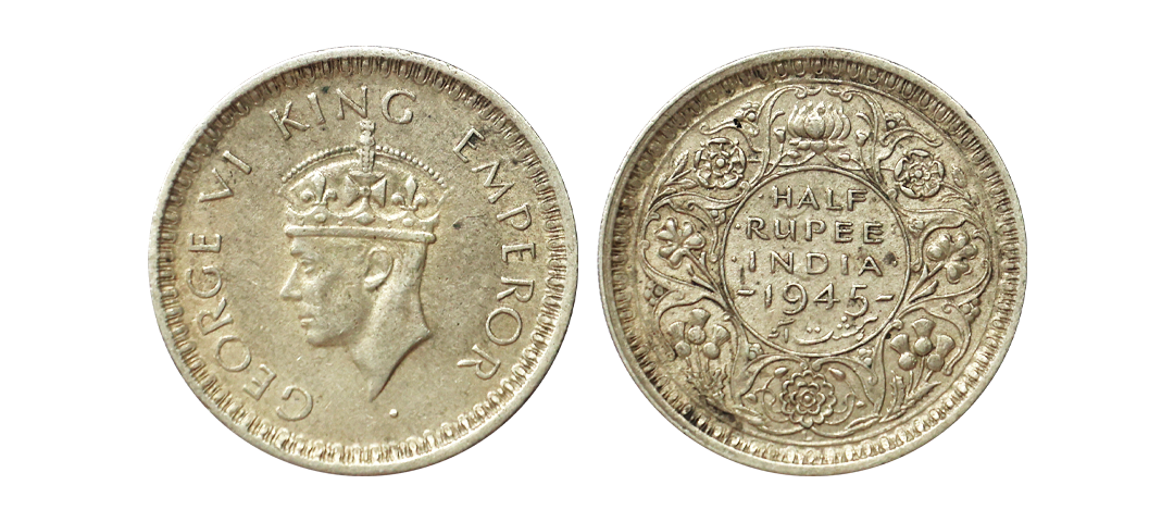 George VI King Emperor, 52% Silver 1/2 Rupee, 1945, Lahore Mint, Large "5", Rare, Extra Fine.