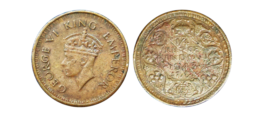 George VI King, 52% Silver 1/4 Rupee, 1945, Bombay Mint, Large "5", Extra Fine.