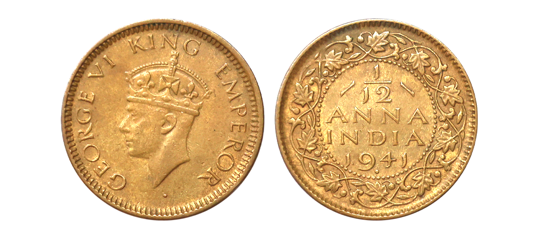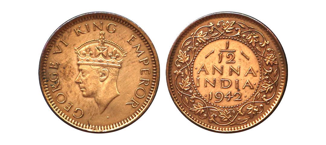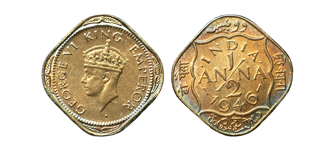 George VI King Emperor, Copper Nickel 1/2 Anna, 1946, Calcutta Mint, AUNC.
