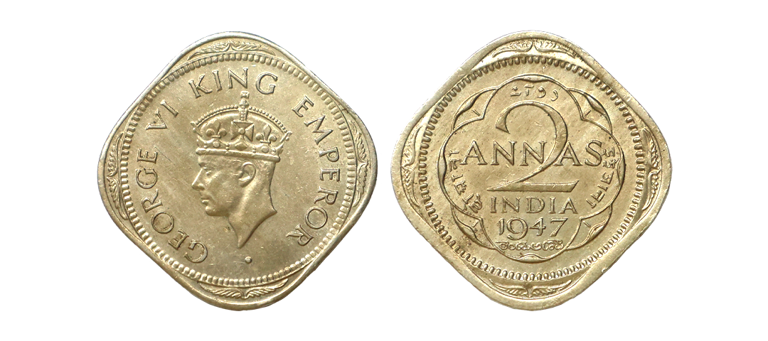 George VI King Emperor, Copper Nickel 2 Annas, 1947, Calcutta Mint, AUNC.