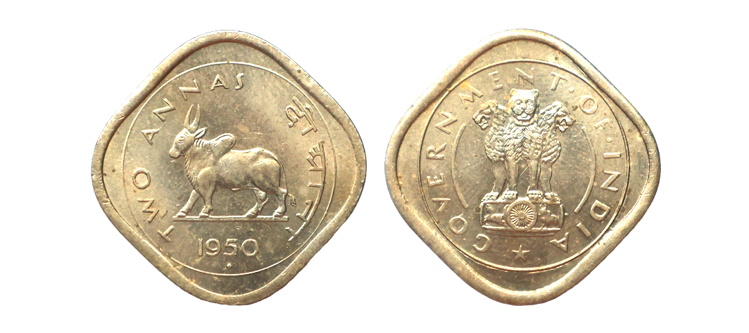 Republic India, Copper-Nickel 2 Annas, 1950, Bombay Mint, Scarce, UNC.