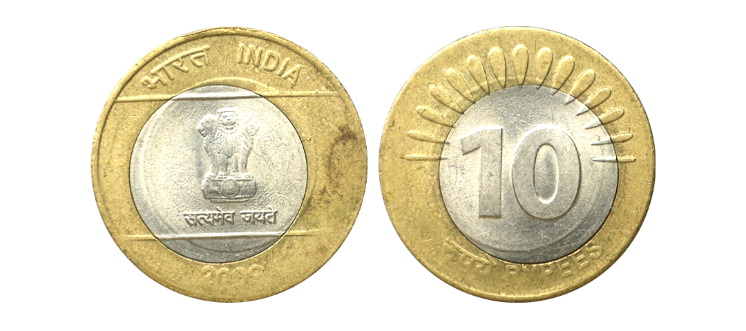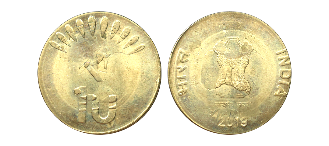 5 Rupees, Nickel-Brass, Over 10 Rupees, Over Strike Error or Mono Metal 2019 Calcutta Mint, Rare, BUNC.