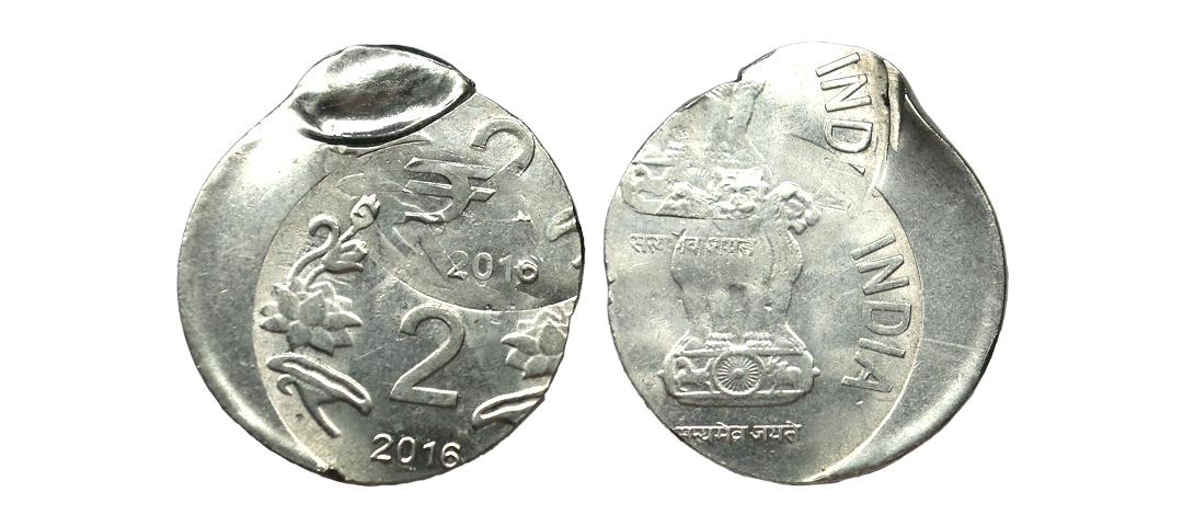 2 Rupees, Steel, FSS, 2016, Calcutta Mint, Double Strike with 10% Indent with 15% Shifting, UNC.