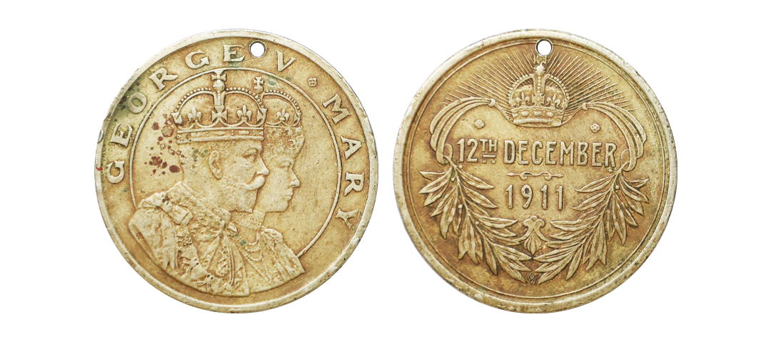 Medal, Copper Nickel Coronation Durbar Medal, 1911, Obv: conjoined crowned busts of King and Queen, right. around border "GEORGE V * MARY: Rev: imperial crown at top with sun rays, two branches at sides enclosing, 12TH DECEMBER 1911, 12.79g, Fine.
