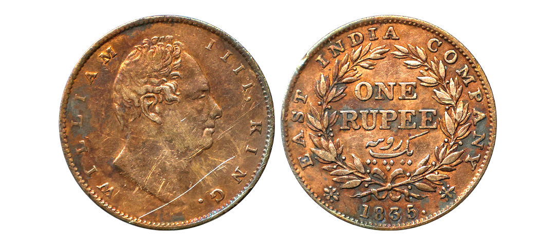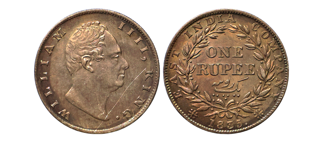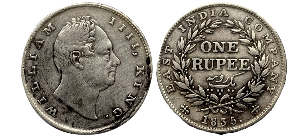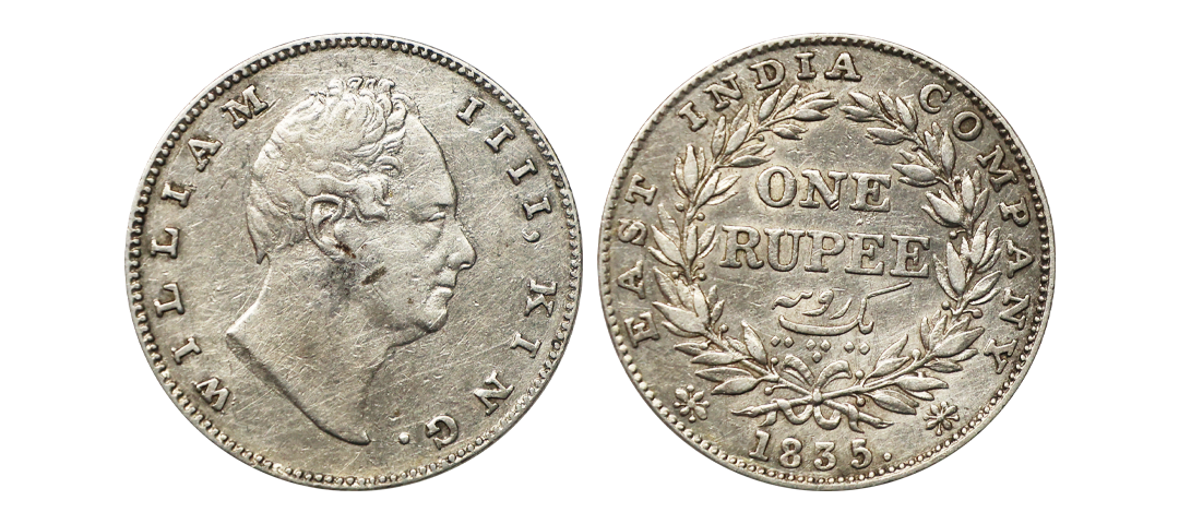 William IIII, Silver Rupee, 1835 Calcutta mint, Thin Lettering, very fine, scarce.