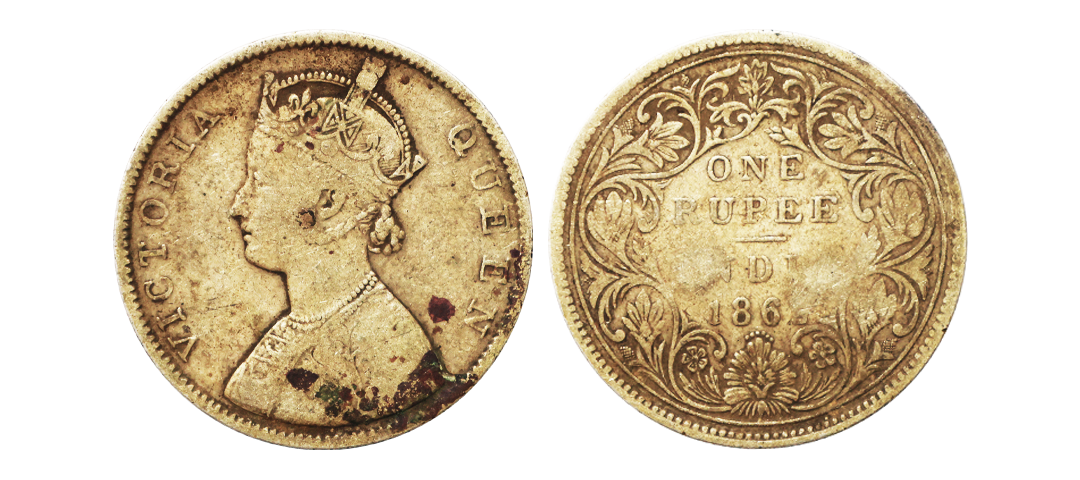 Victoria Queen, 1862, Silver Rupee, B/II, 0/6 DOTS, Very Rare Variety.