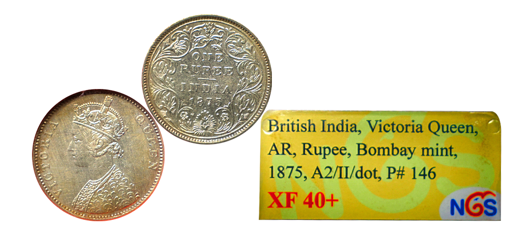 Victoria Queen, 1862, Silver Rupee, A/II, 0/4 DOTS, Superb trike with shining surfaces, Graded by NGC as MS61, Very rare.